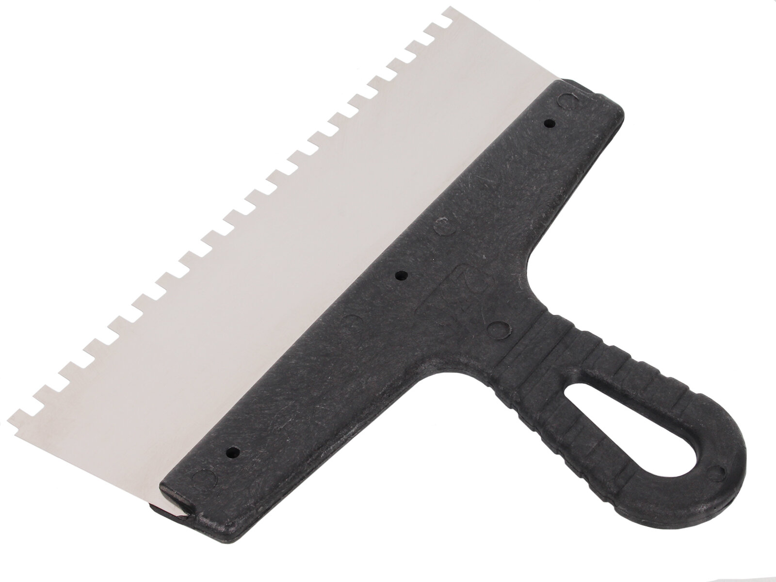 Шпатель из нержавеющей стали, 250 мм, зуб 6х6 мм, пластмассовая ручка// Сибртех