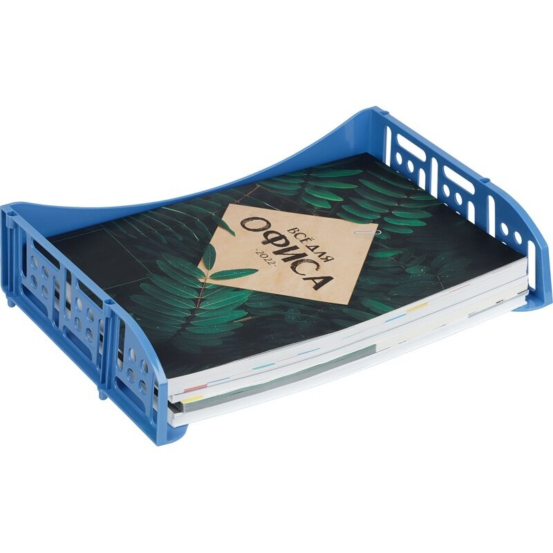 Лоток для бумаг горизонтальный СТАММ "Field", широкая загрузка, сине-голубой