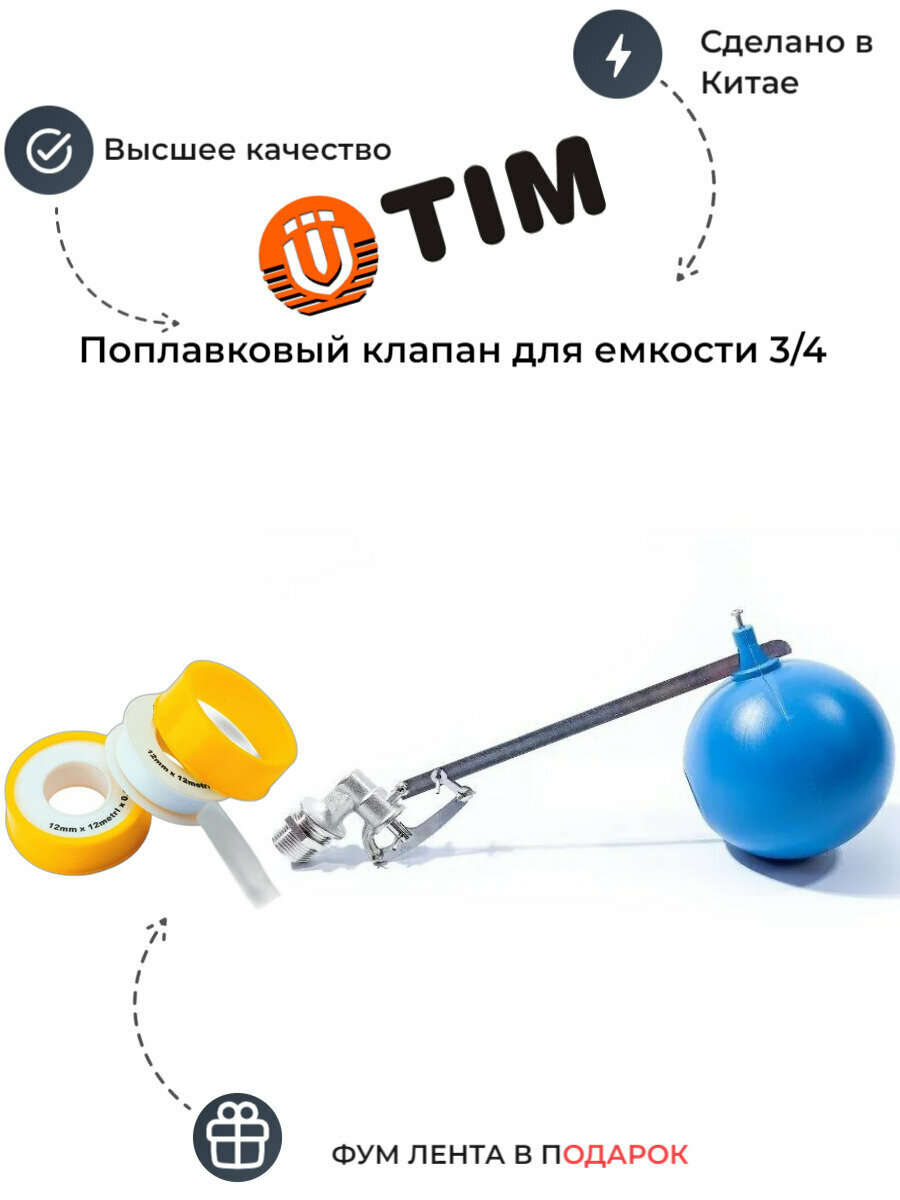 Поплавковый клапан для емкости 3/4" НР, поплавок D - 120 мм TIM арт. BAF6312S