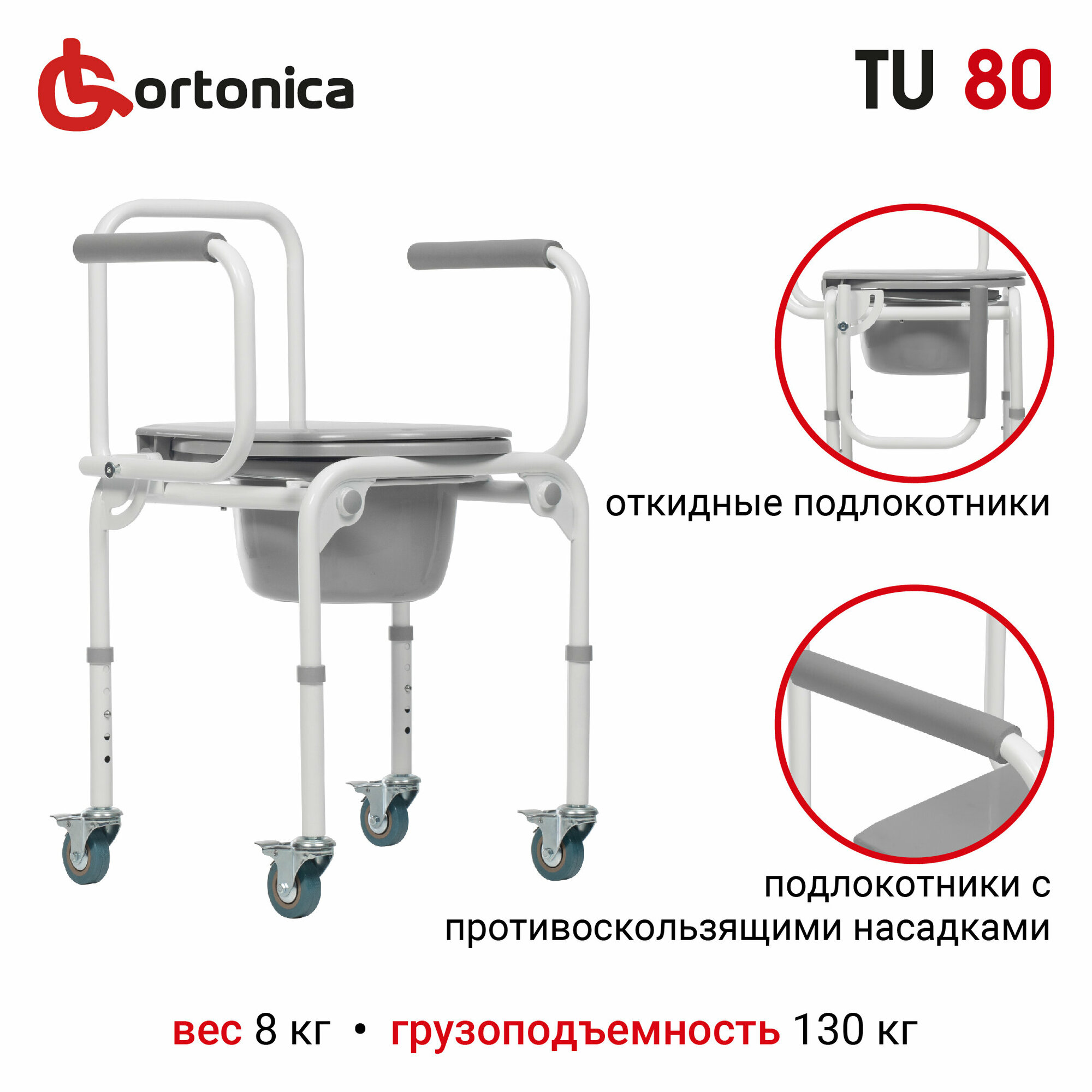Купить Cтул туалет Ortonica TU 80 для пожилых и инвалидов на колесах с откидными подлокотниками 45 см до 130 кг Код ФСС23-01-01