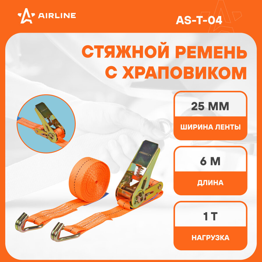Ремень крепления груза с храповиком 6м, 1т AS-T-04 AIRLINE AS-T-04