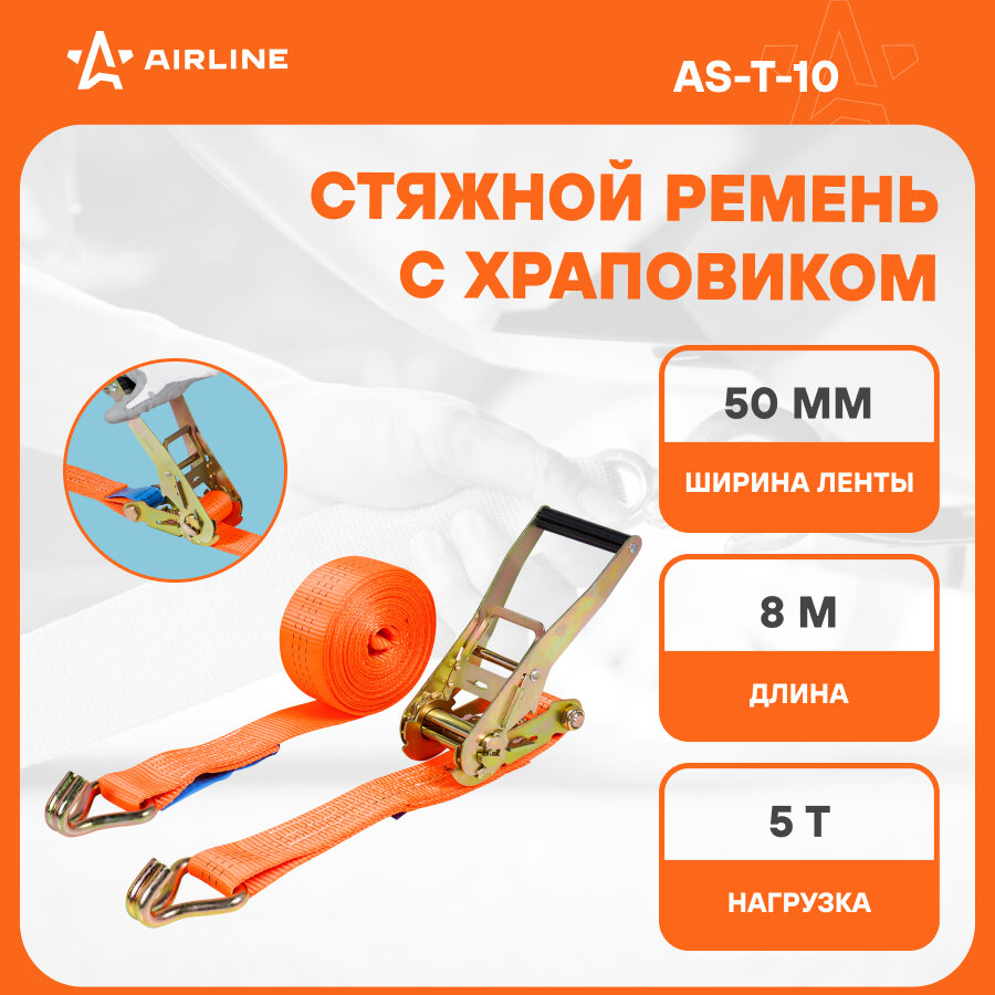 As-T-10_Ремень Крепления Груза! С Храповиком 8 М, 5 Т AIRLINE арт. AS-T-10