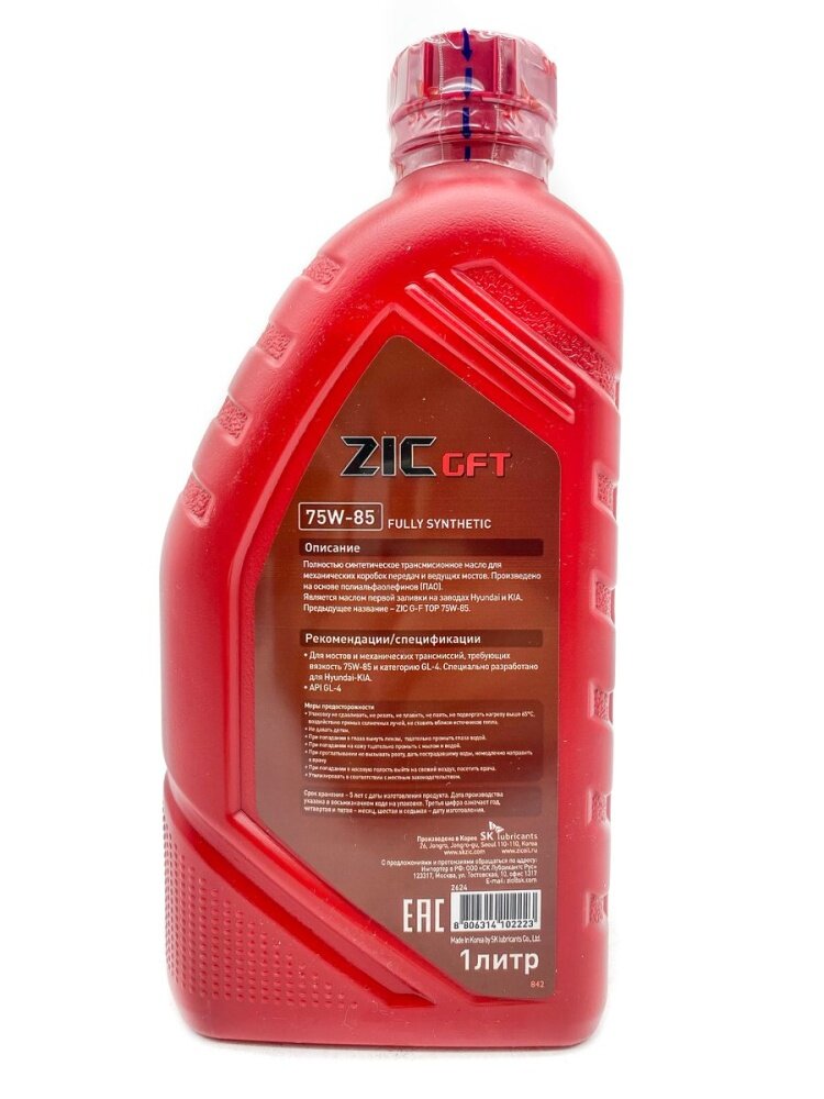 Масло Трансмиссионное Zic Gft 75w85 Синтетическое 1 Л Zic арт. 132624