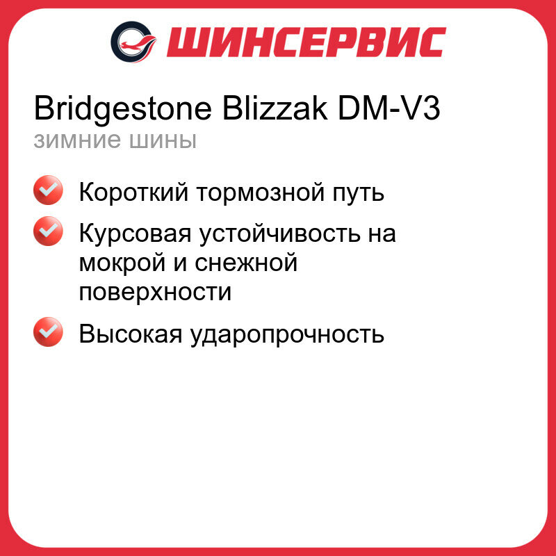 Шина Bridgestone(Бриджстоун) BLIZZAK DM-V3 275/60 R20 115R зимняя липучка