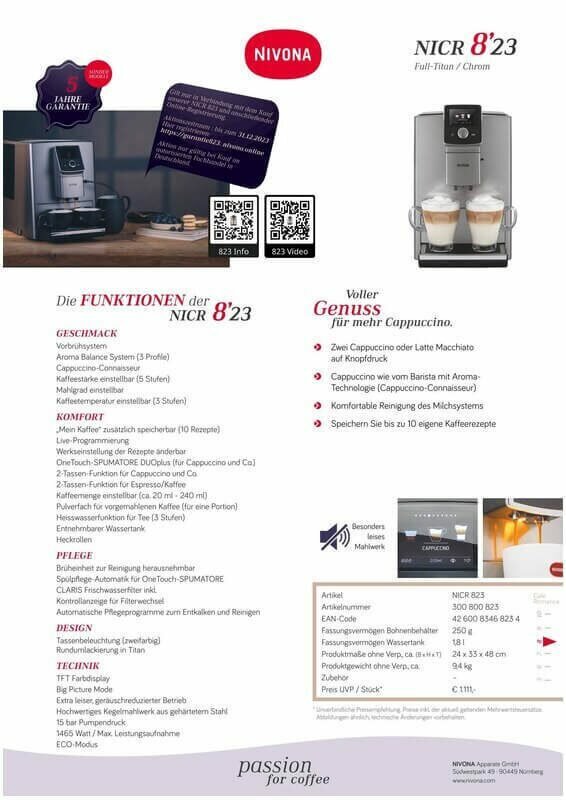 Ниже Вы можете прочитать отзывы на Кофемашина Nivona CafeRomatica NICR 823, ознакомится с подробными характеристиками, посмотреть интересные обзоры и фотографии на Кофемашина Nivona CafeRomatica NICR 823.