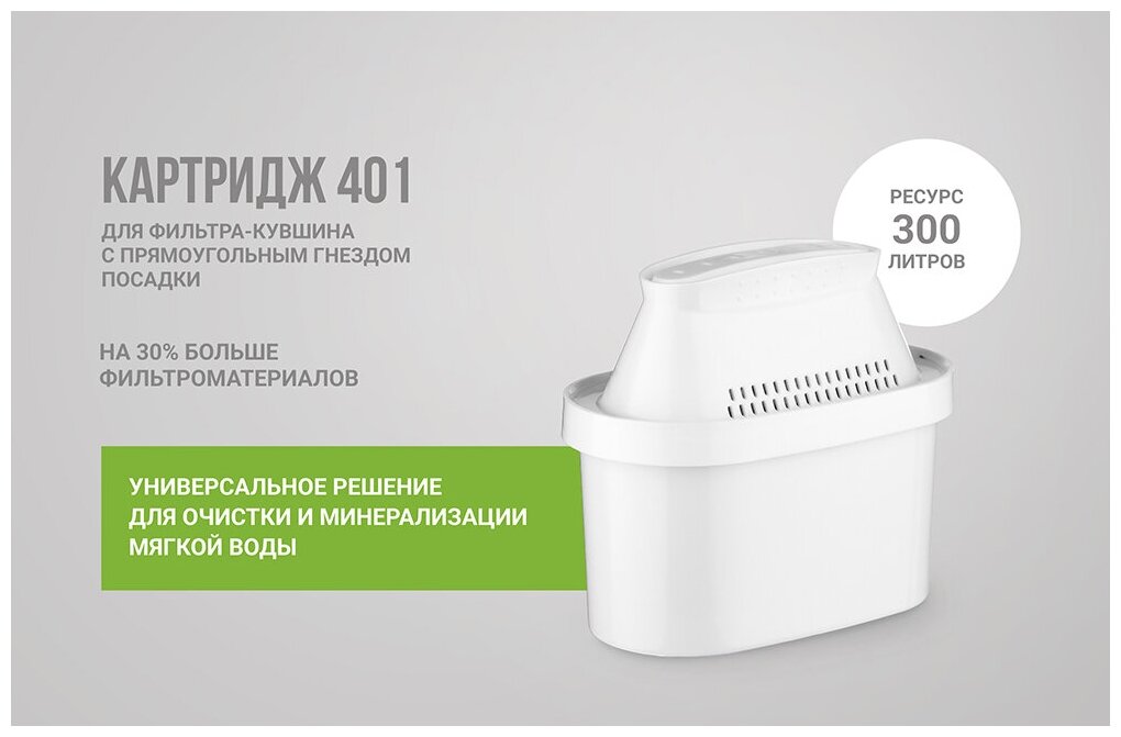 Сменный картридж для фильтра-кувшина Экстра 401, Гейзер грубая очистка, удаление хлора, тонкая очистка, смягчение воды