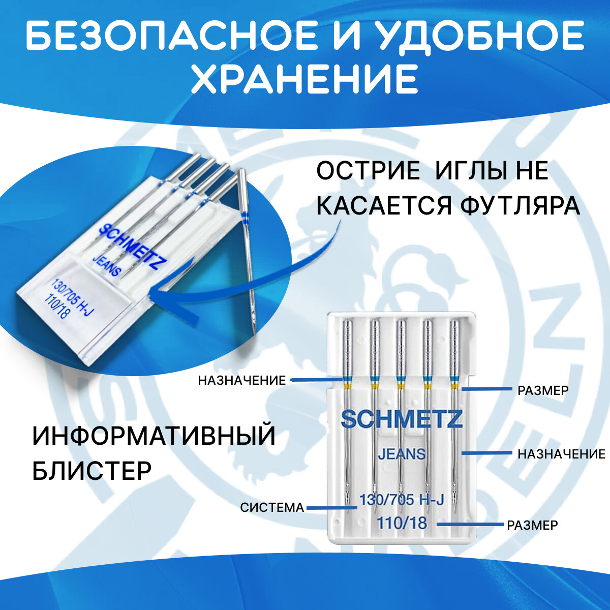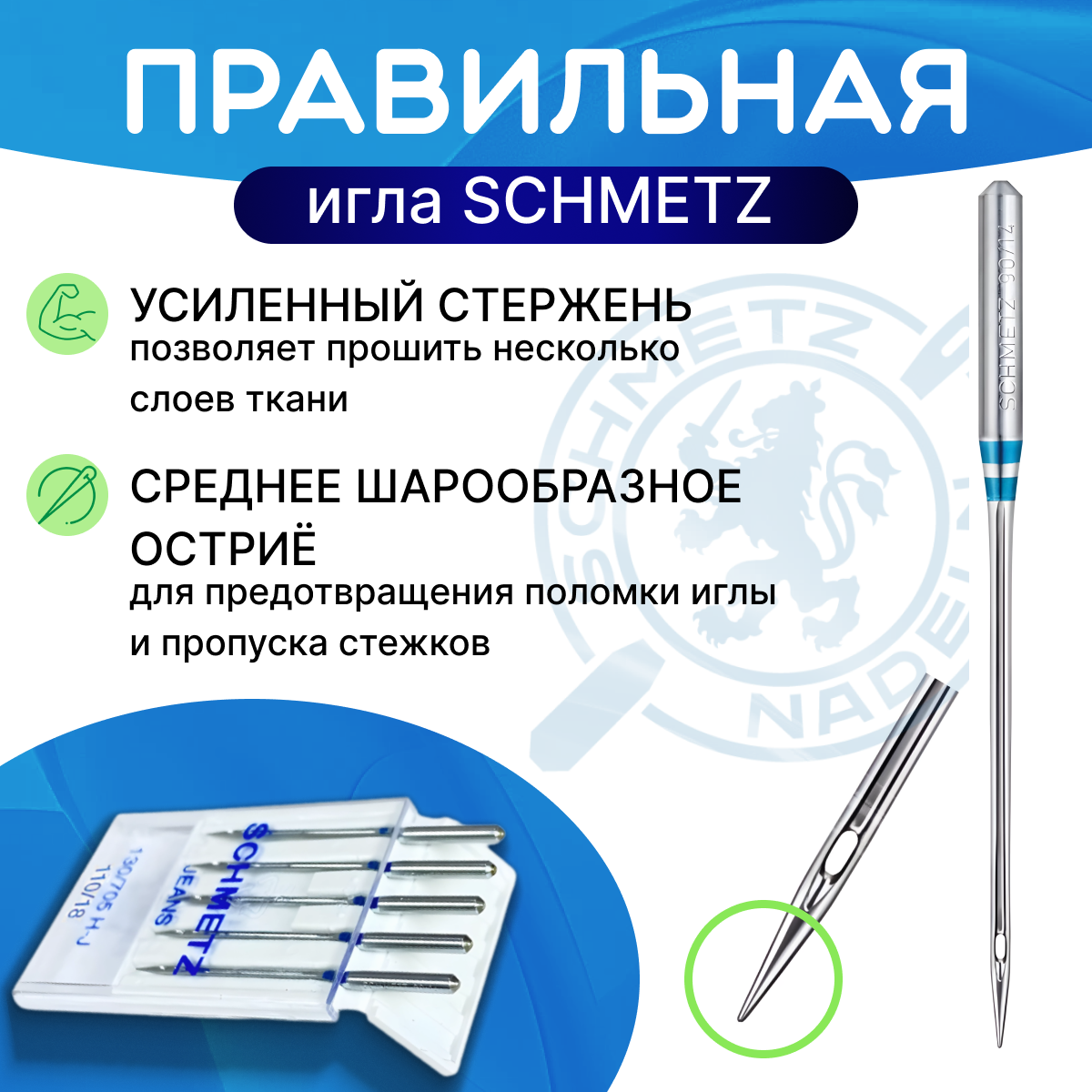 Купить Швейные иглы для джинсы № 110, 5 штук, Schmetz 130/705Н-J для швейных машин