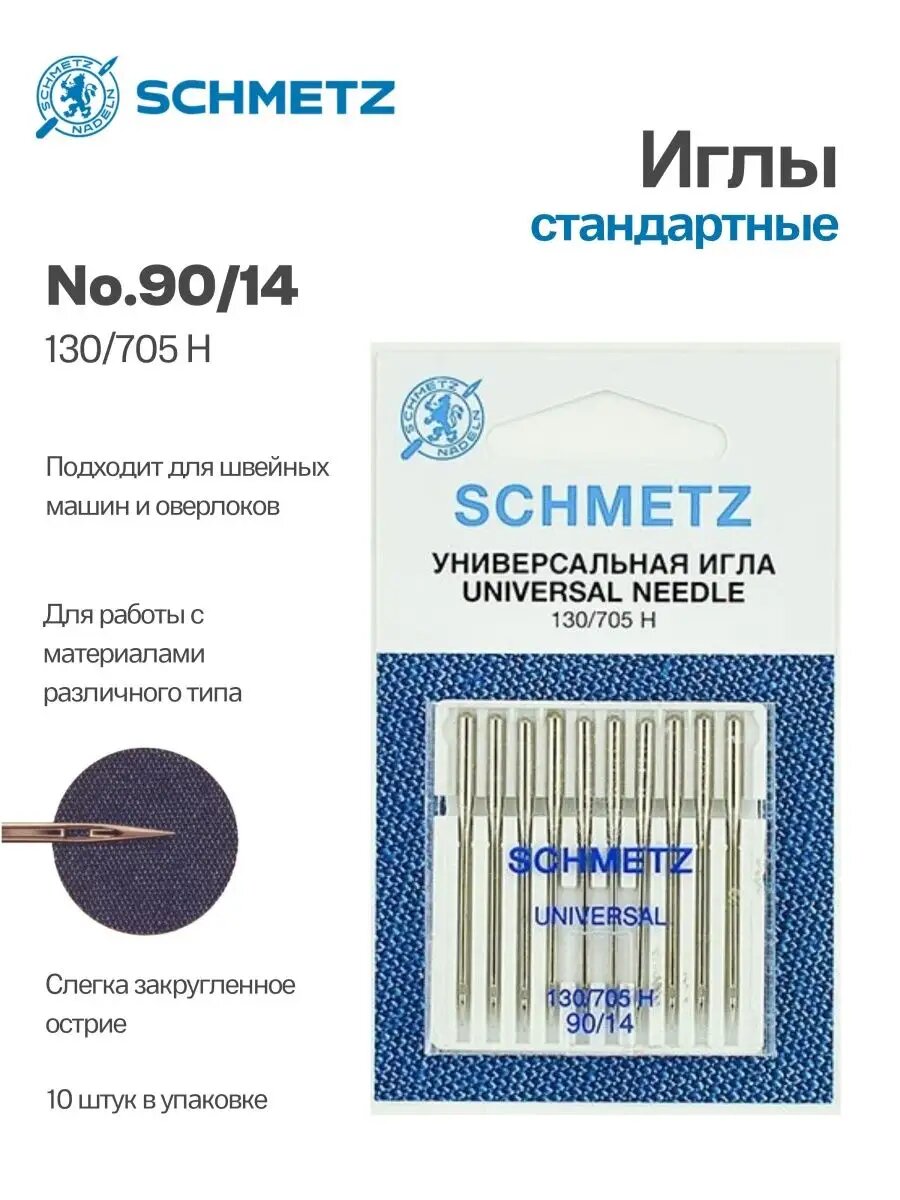 Купить Швейные иглы стандартные № 90, 10 штук, Schmetz 130/705Н для швейных машин