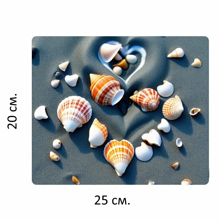 Купить Коврик для мыши с принтом "Ракушки в форме сердца на берегу" 25x20см.