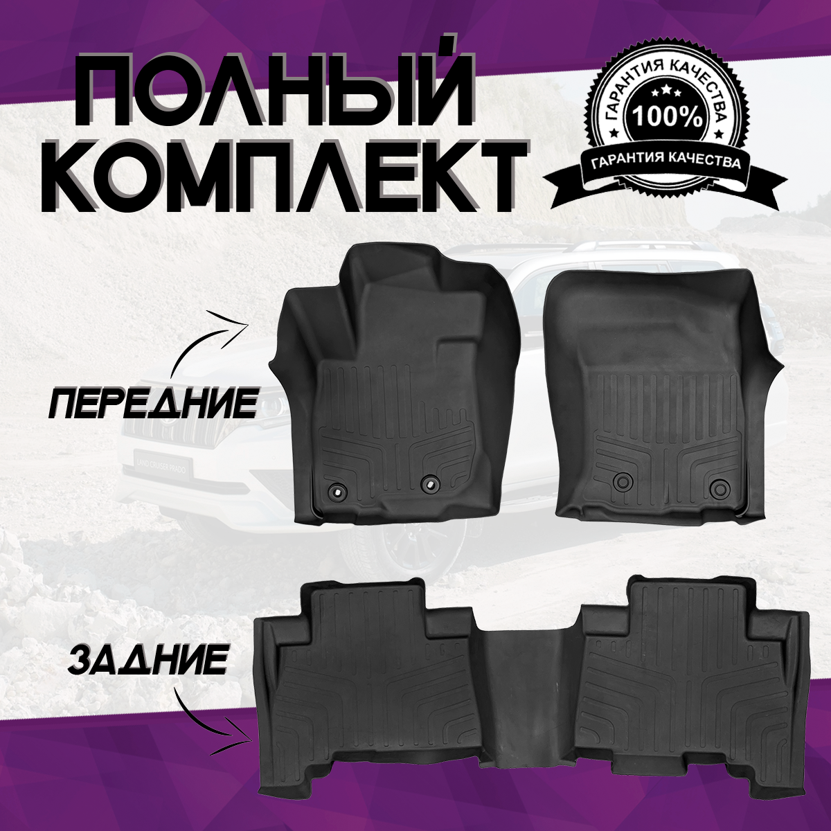 Коврики резиновые в салон 3D LUX для Toyota Land Cruiser 150 Prado (2009-н.в.)/ Тойота Ленд Крузер Прадо 150 / комплект ковров/ SRTK