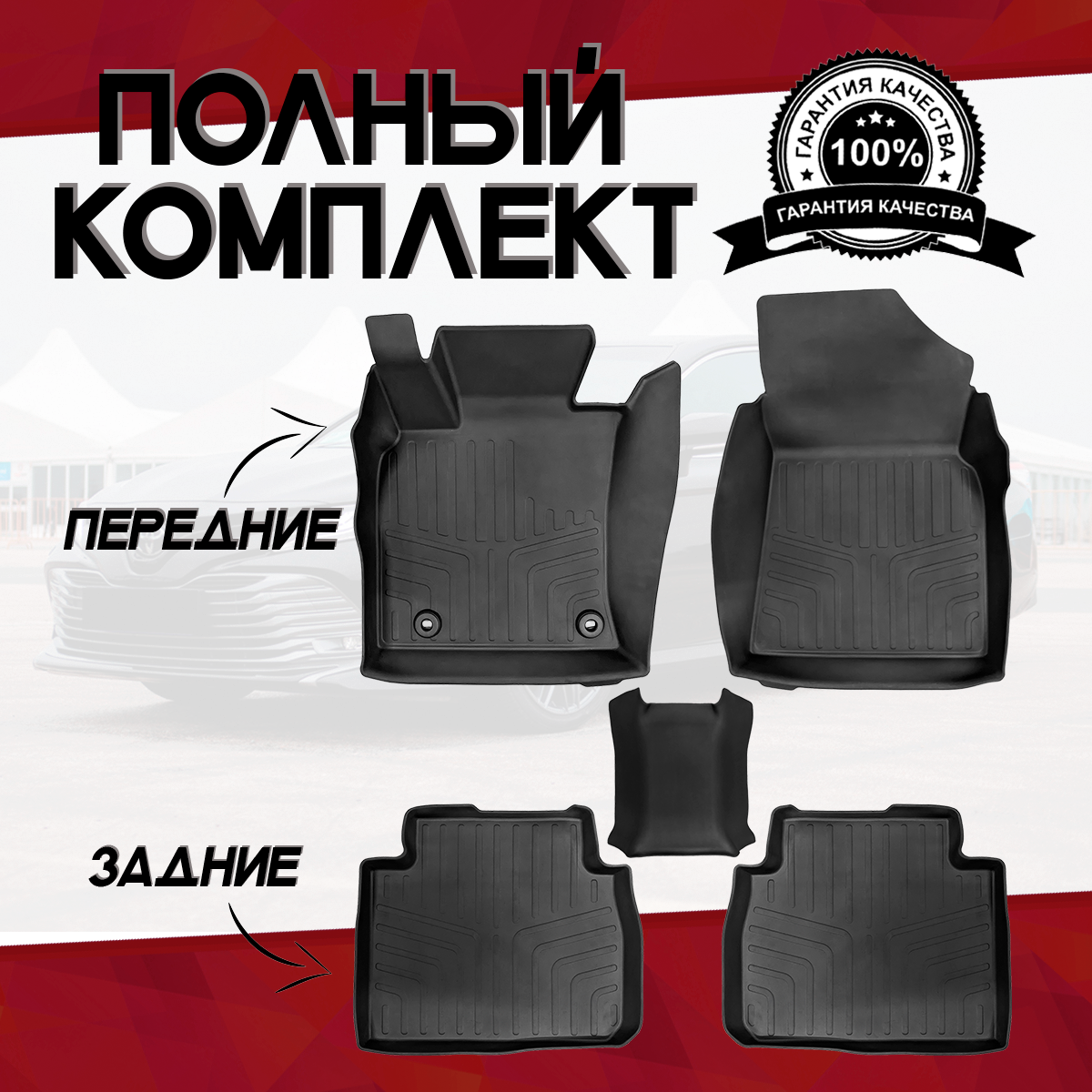 Коврики резиновые в салон для Тойота Камри 70/Toyota Camry XV70 (2017-) 3D PREMIUM SRTK (Саранск) комплект в салон