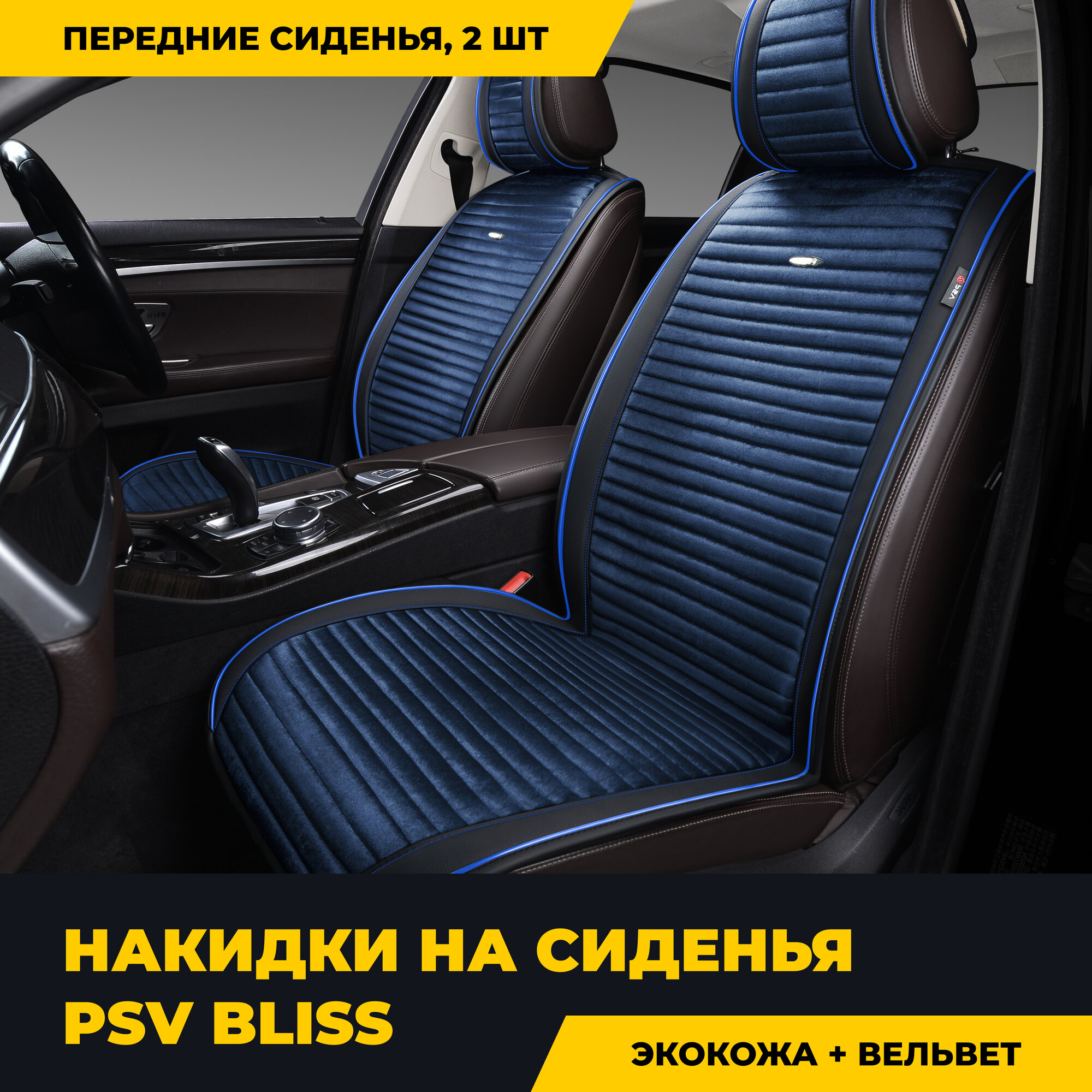 Накидка На Сиденье Psv Bliss 2 Передняя Экокожа/Вельвет 2 Шт. Черно-Синяя PSV арт. 131872