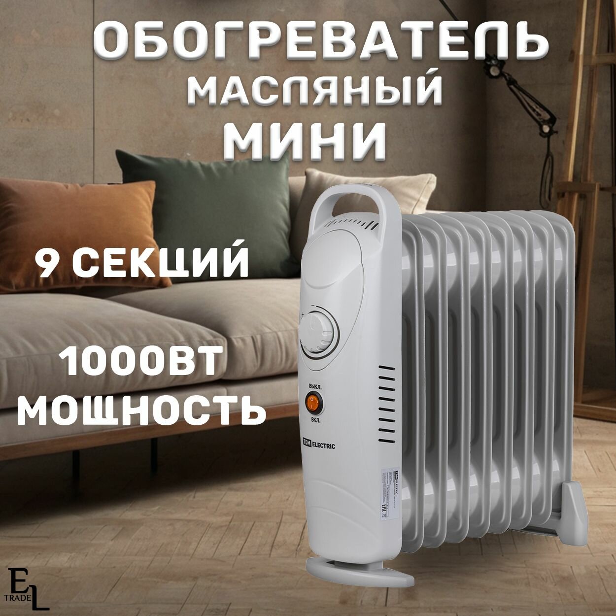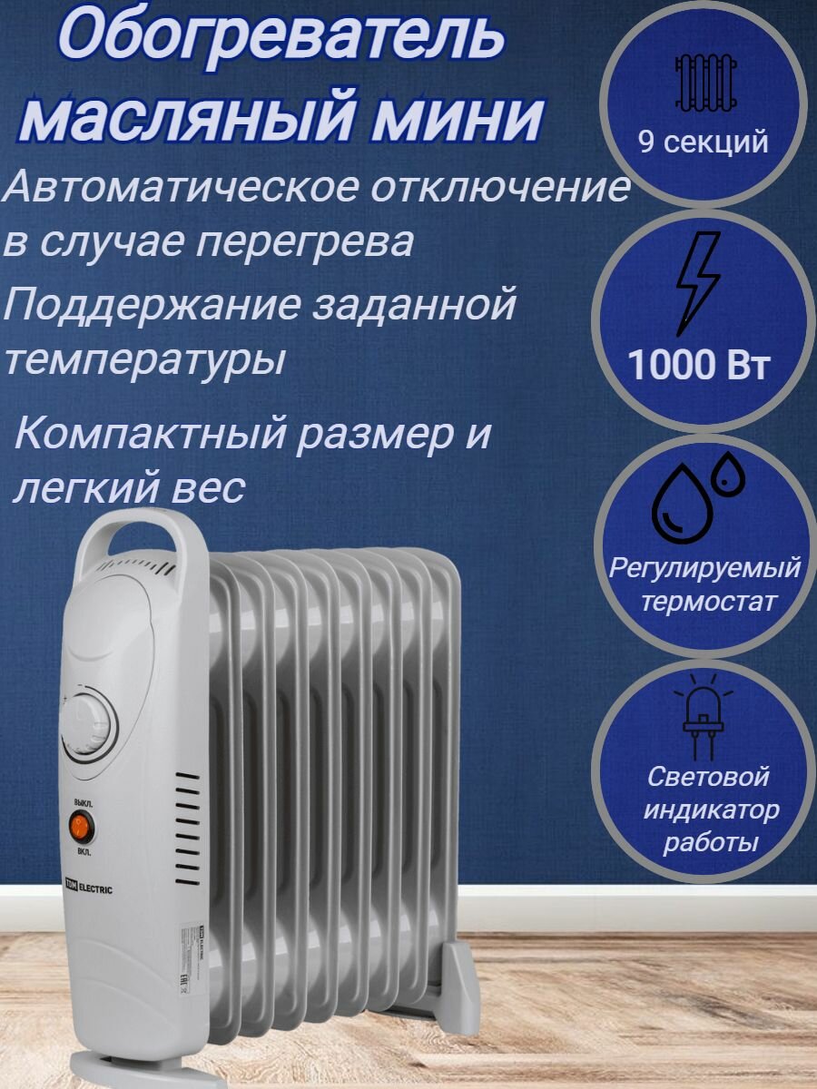 Купить Обогреватель масляный мини (390х140х375 мм, 1000 Вт, 9 секций, термостат)