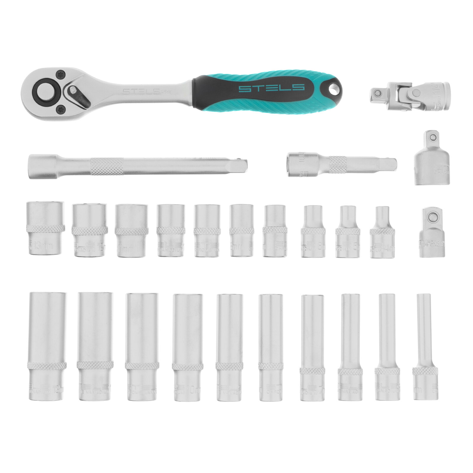 Набор торцевых головок с трещоткой, 1/4, 26 предметов Stels (13574)
