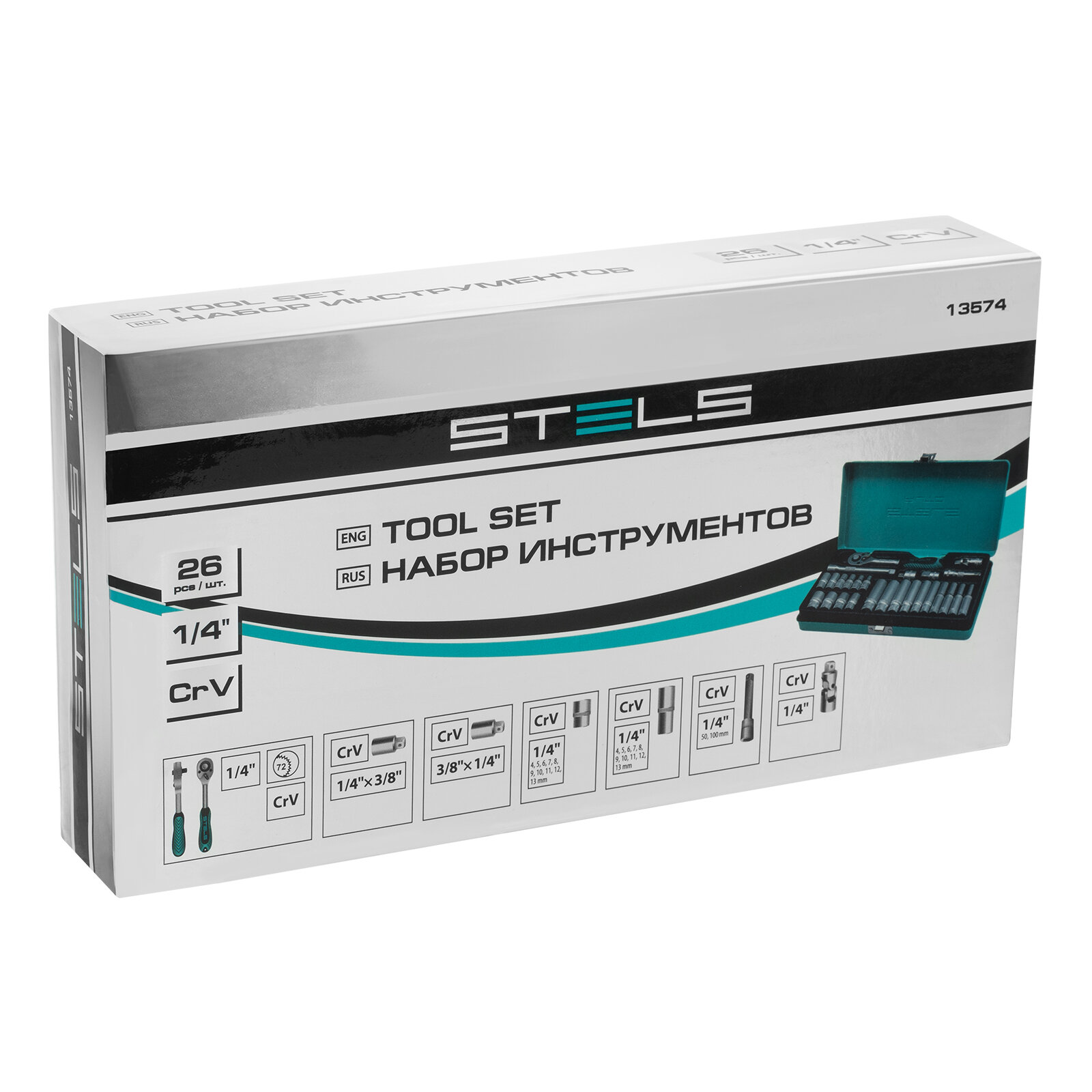 Набор торцевых головок с трещоткой STELS EQUIPMENT STELS 13574 EQUIPMENT 1/4", 26 предм