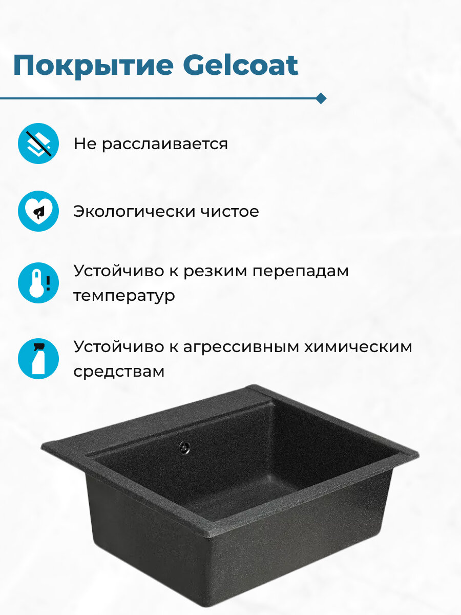 Кухонная мойка AQUATON Делия 59.4х51х21.8 литьевой мрамор, цвет Графит (1A715232LD210)