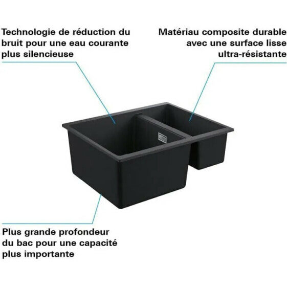 GROHE Composite Sple K500 31648AP0 - Einbau - 1 Becken + Becken - Umkehrbare Abtropfflche - 55,5x46 cm - Granit schwarz