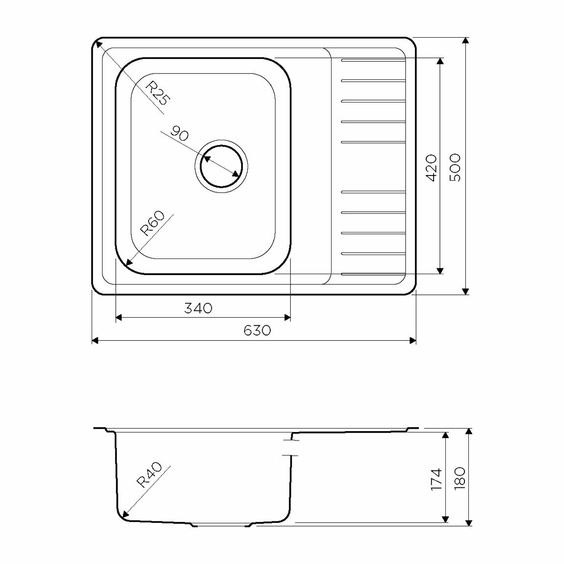 | Длина мойки | 63 см |