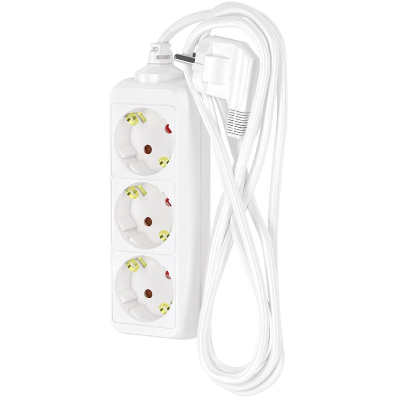 Удлинитель для гирлянды сетевой для розетки фотон 16А 3м 3 розетки с заземлением белый, ГОСТ