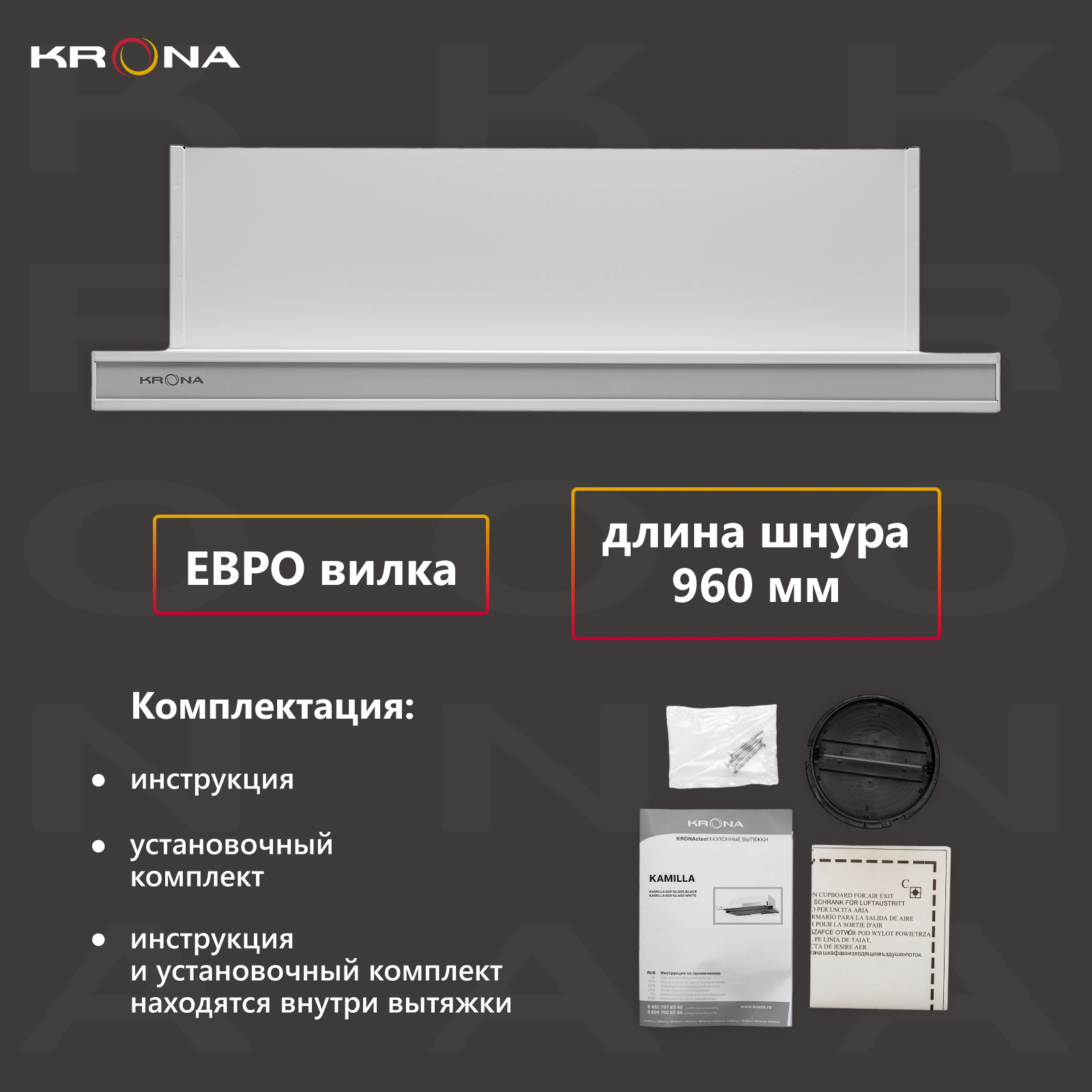 Встраиваемая вытяжка Krona Kamilla 600 Glass белый (00026270)