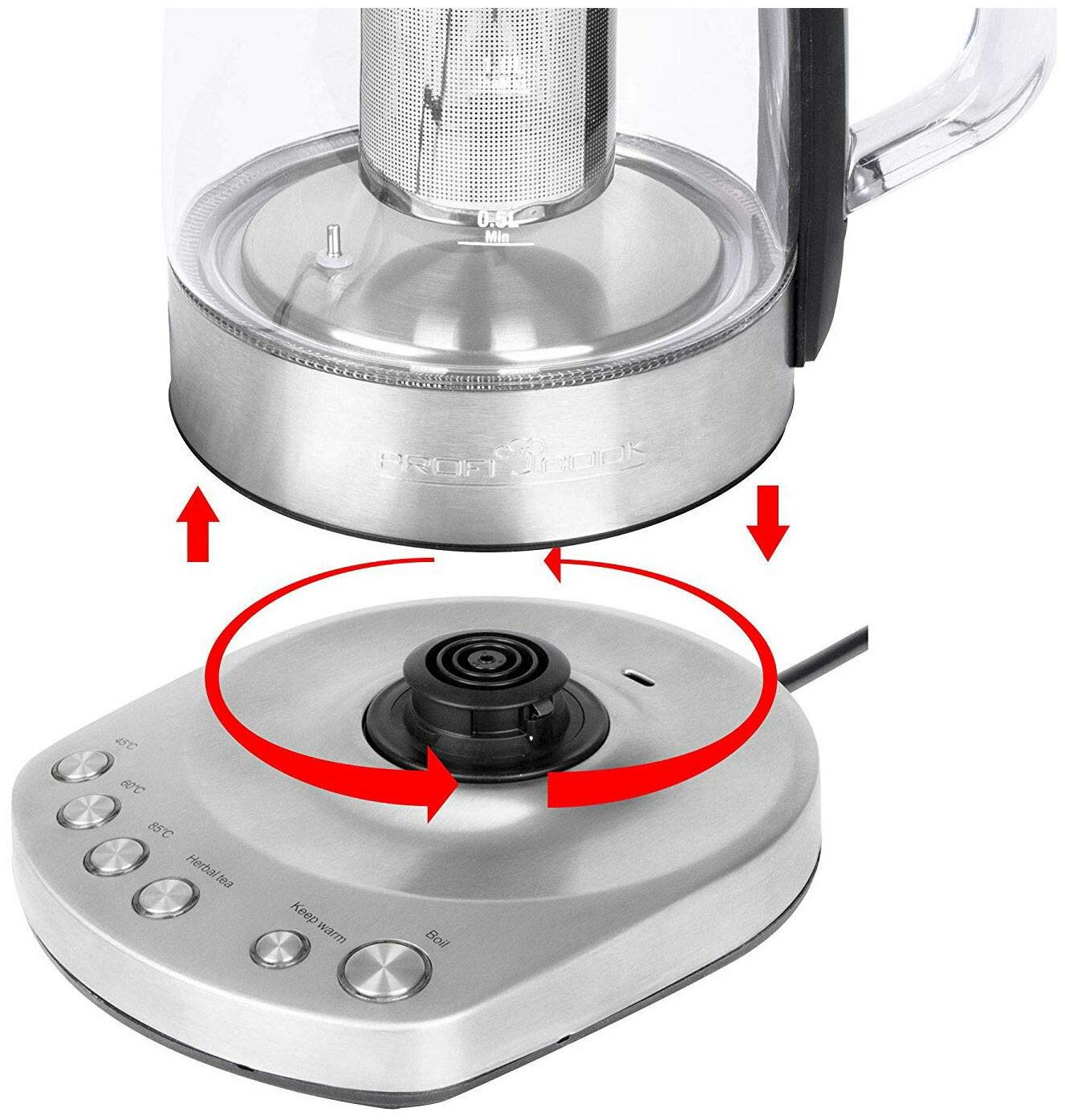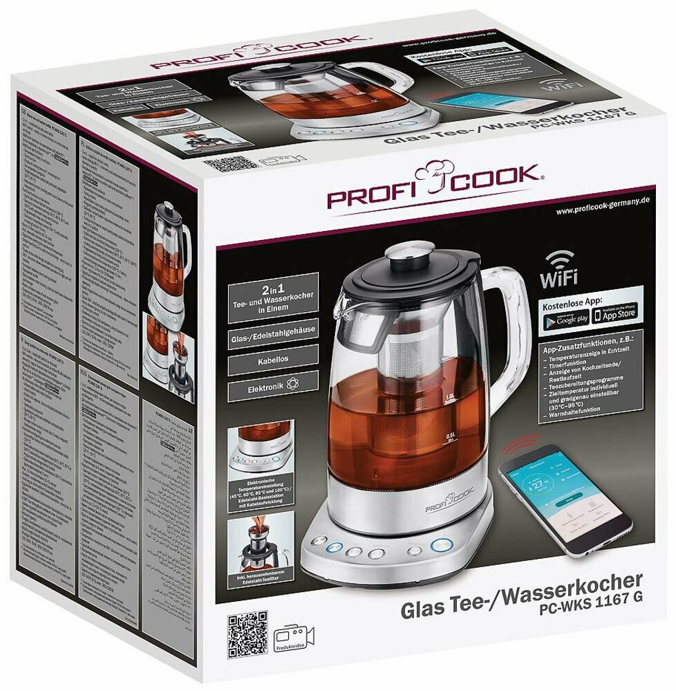 Чайник заварочный Profi Cook PC-WKS 1167 G 2200 Вт прозрачный металлик 1.5 л металл/стекло