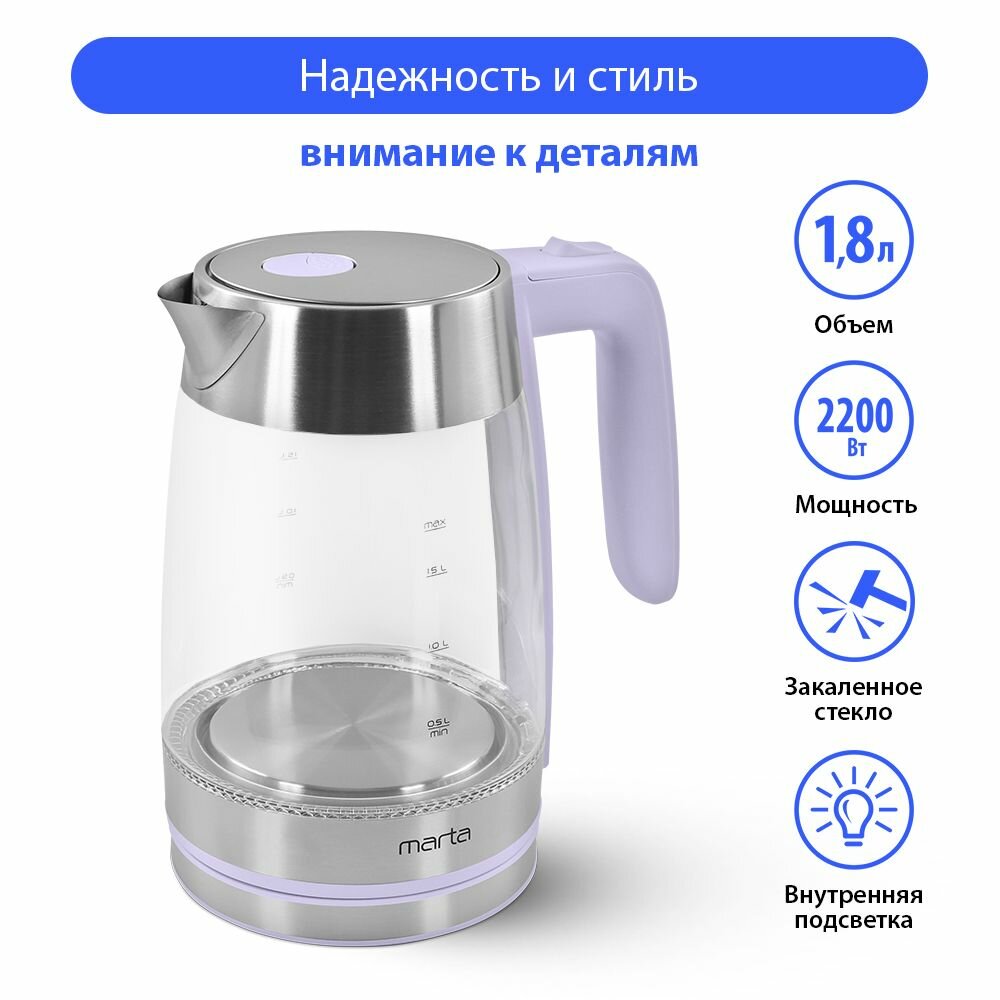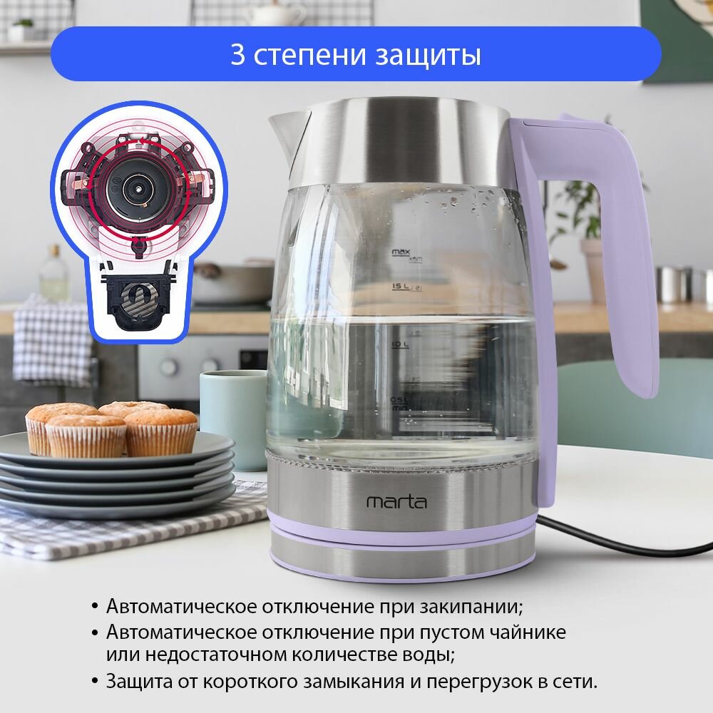 Купить Чайник электрический стеклянный, с подсветкой 1.8 л