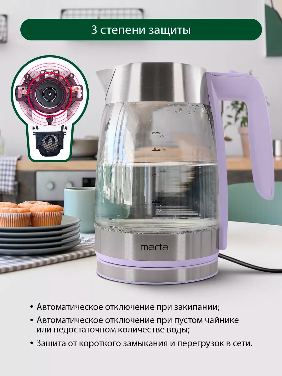 MARTA MT-4553 сиреневый чайник стеклянный