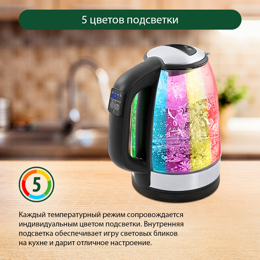Чайник электрический стеклянный с подогревом 1,7л интересное: