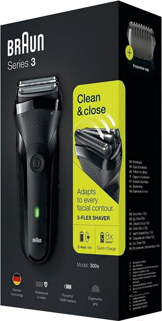 Электробритва Braun 3000VS аккумуляторная и беспроводная электрическая бритва для мужчин, черная, 300 г интересное: