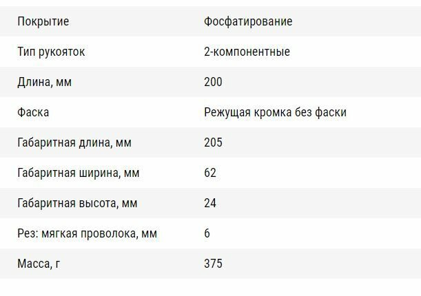 Бокорезы для реза вплотную мягкого металла и пластика, губки 20, пружина, 200 мм, фосфатированные, 2
