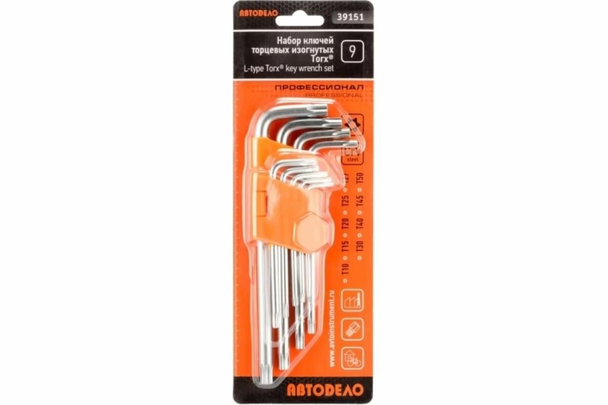 Купить Набор ключей, АвтоDело, TORX, Г-образные, набор "Профессионал" 9 шт, Т10-Т50, 39153