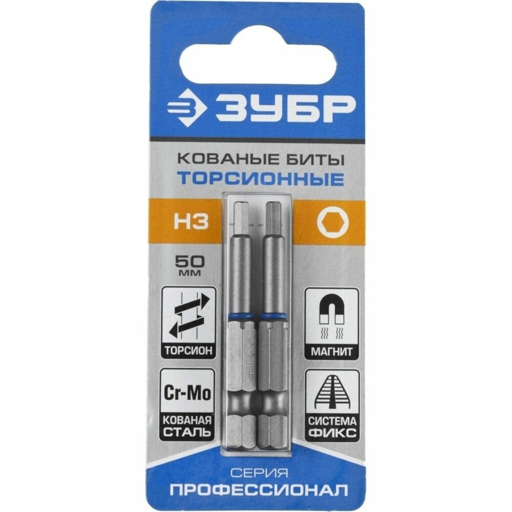 Биты ЗУБР ″Профессионал″, торсионные кованые, обточенные, HEX3, 2шт (26017-3-50-2)