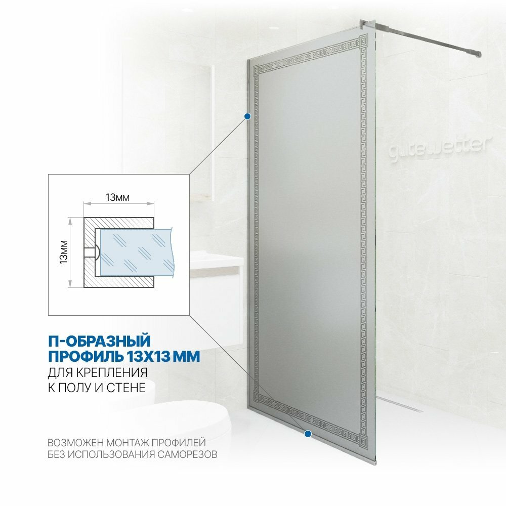 СохранитьДушевая перегородка GWMPGL010V 100x220 см, цвет фурнитуры хром матовый, цвет стекла матовый с рисунком, стекло закаленное 10 мм интересное: