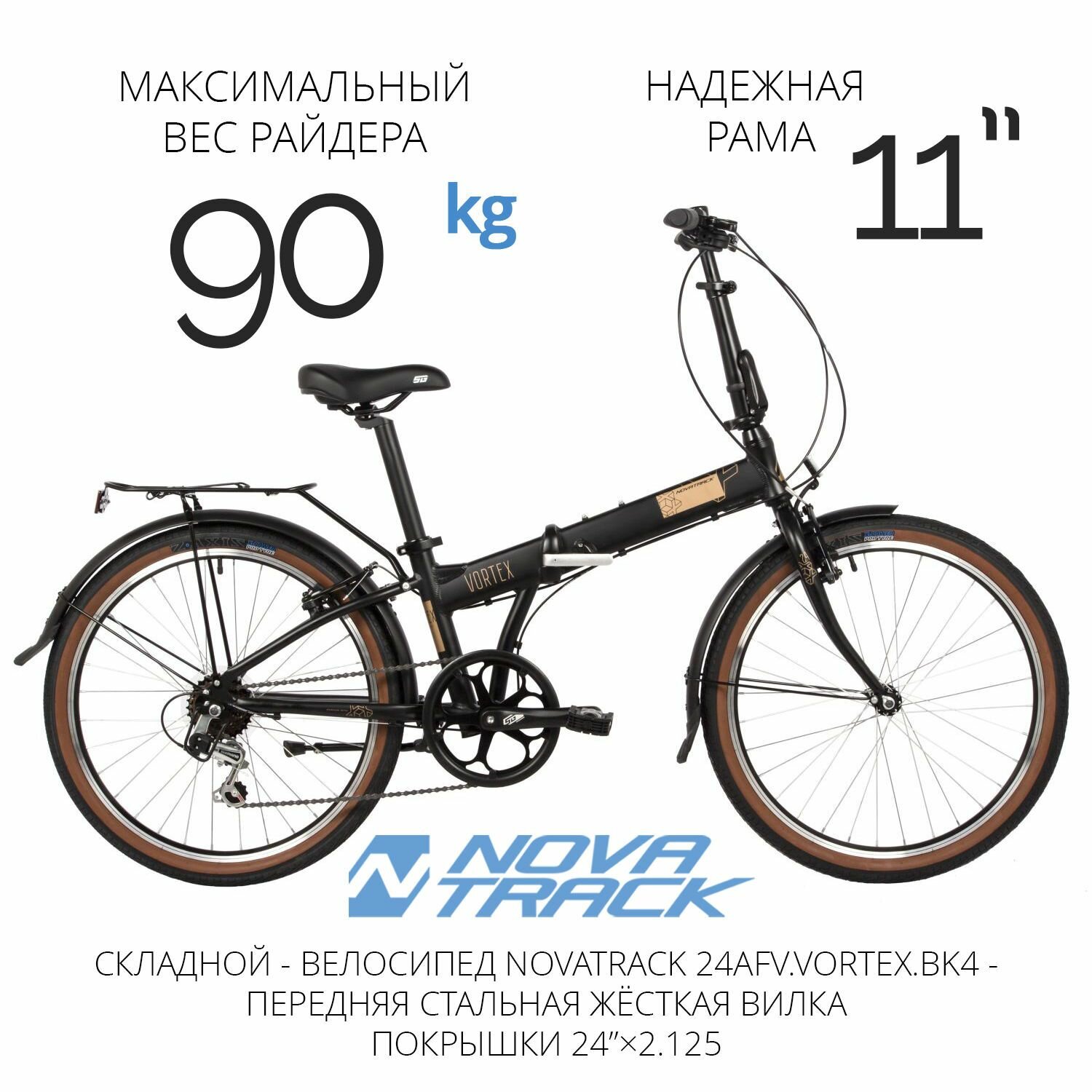 СохранитьВелосипед складной 24" NOVATRACK VORTEX алюминиевая рама с багажником на рост 135-180 см черный 6 скоростей, городской прогулочный велик / взрослый/мужской/женский/подростковый от 9 лет интересное:
