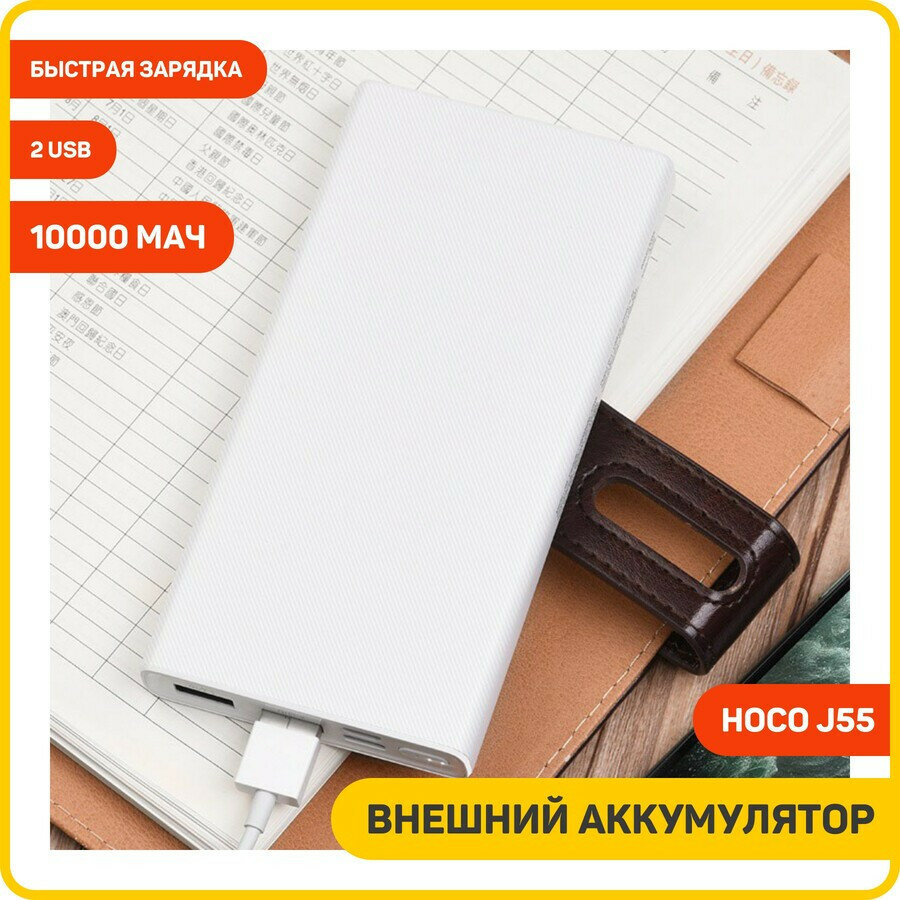 Внешний аккумулятор USB Hoco J55 (10000mAh/2A/2 порта) <белый>