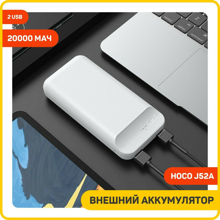 Внешний аккумулятор HOCO J52A, 20000mAh, 2USB 2.0A (белый)