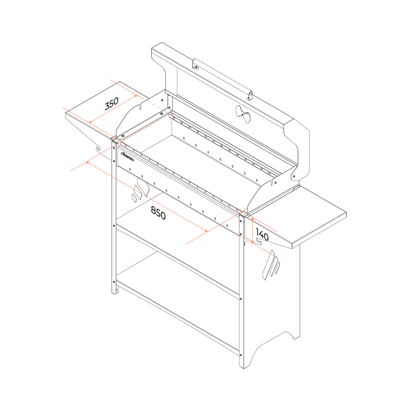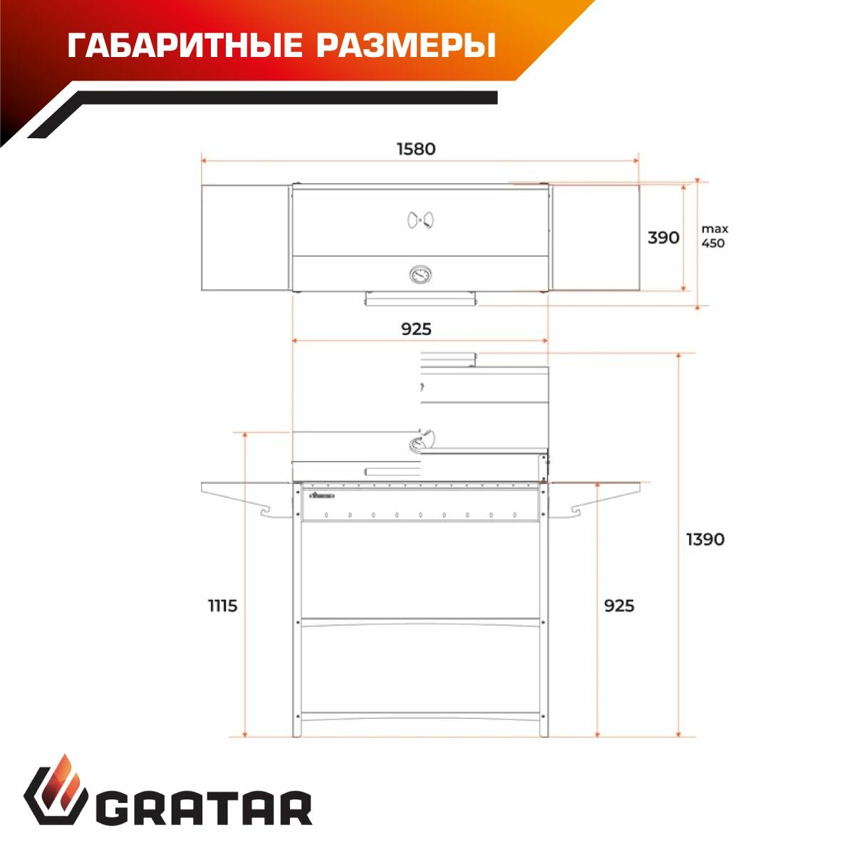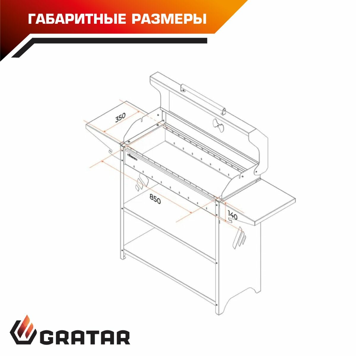 Мангал 1582х445х1110 мм, 3 мм, с крышкой, гриль, складные полки, барбекю, Gratar, ProfStandart BBQ