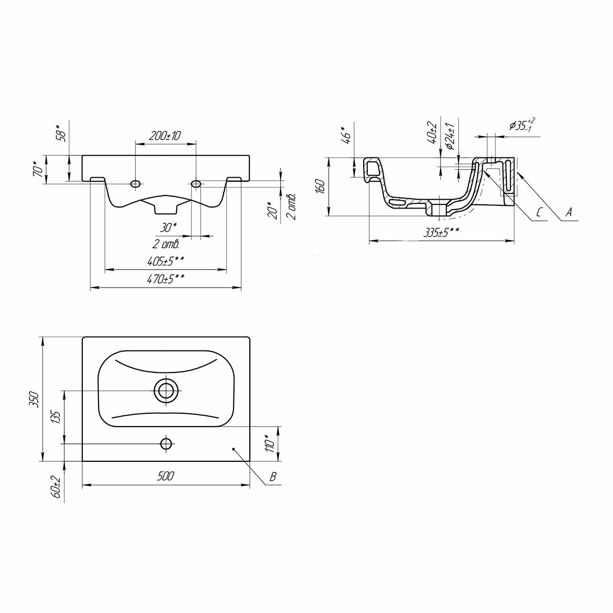 | Число размеченных отверстий под смеситель | отсутствуют |