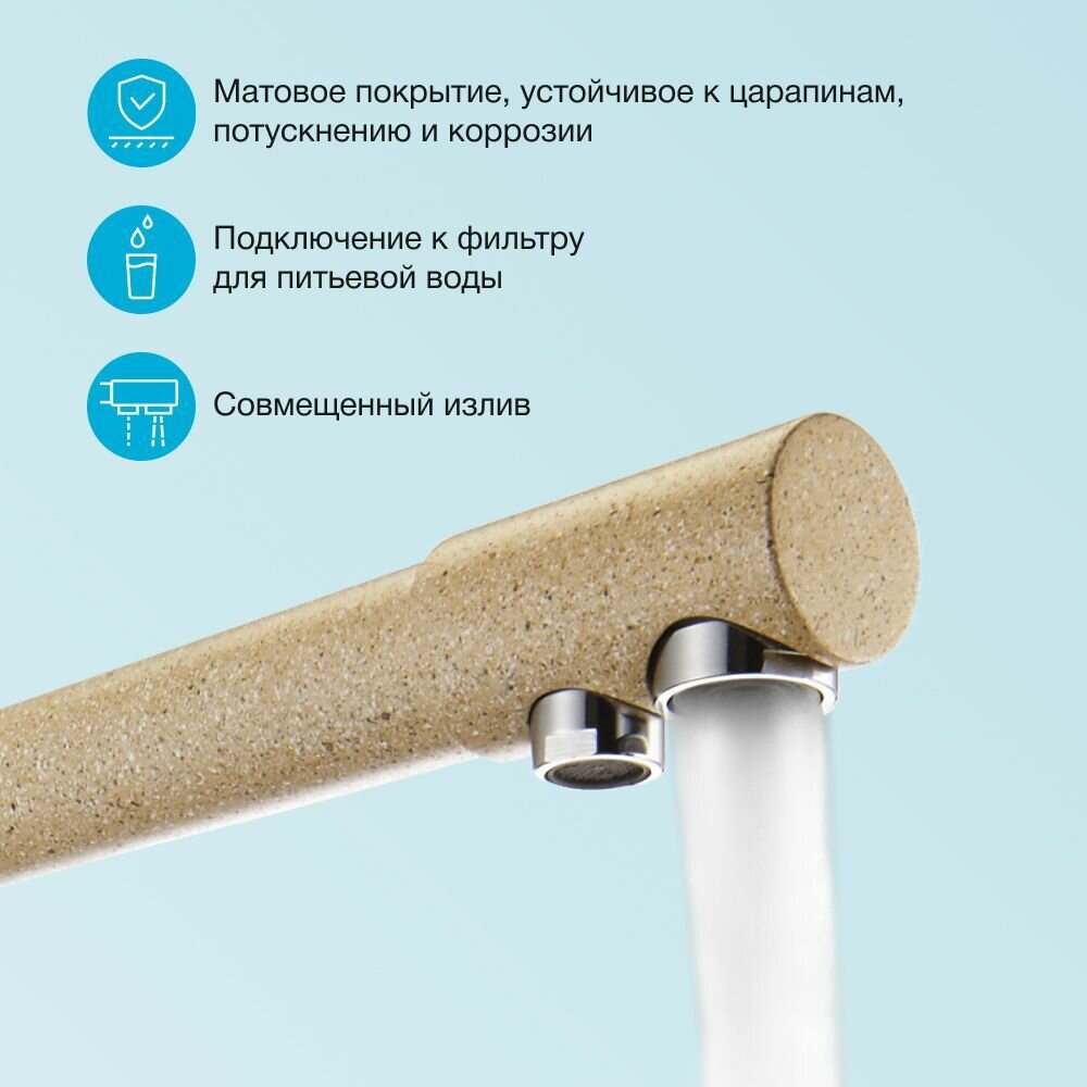 Кран-смеситель воды с фильтром для кухни Aquaton Руан 1AX004FCXX220 Песочный
