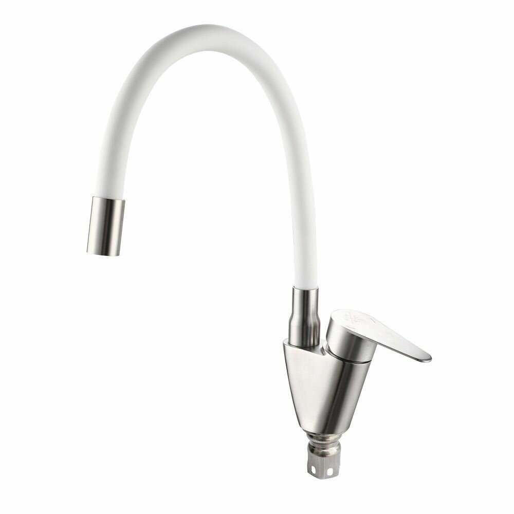 Смеситель для кухни, РМС SUS124-017FL, нержавеющая сталь, поворотный излив, с гибкой подводкой, гарантия