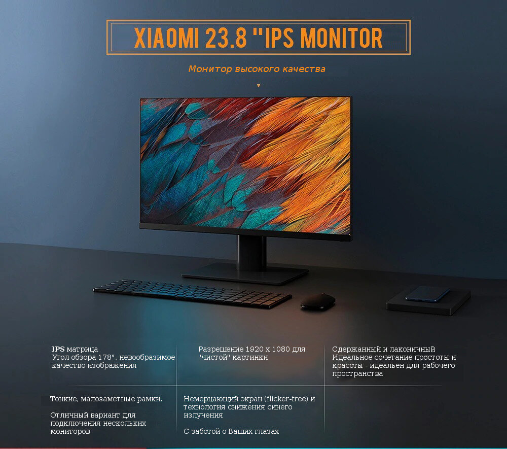 Монитор Xiaomi 23.8 Mi Desktop Monitor черный IPS LED 16:9 HDMI матовая 250cd 178гр/178гр 1920x1080 FHD 4кг