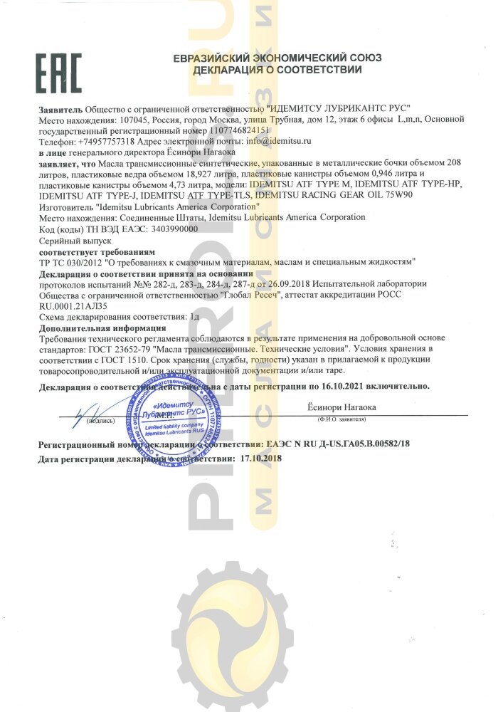 | Отзыв: | Полный аналог оригинального трансмиссионного масла Мазда, проверял по допускам и тех. характеристикам, один в один с оригиналом. В некоторых источниках даже утверждают, что оригинальной канистре залито именно идемитсу (как известно, мазда сама масла не делают, а закупают, разливают по канистрам и лепят фирменную этикетку). |