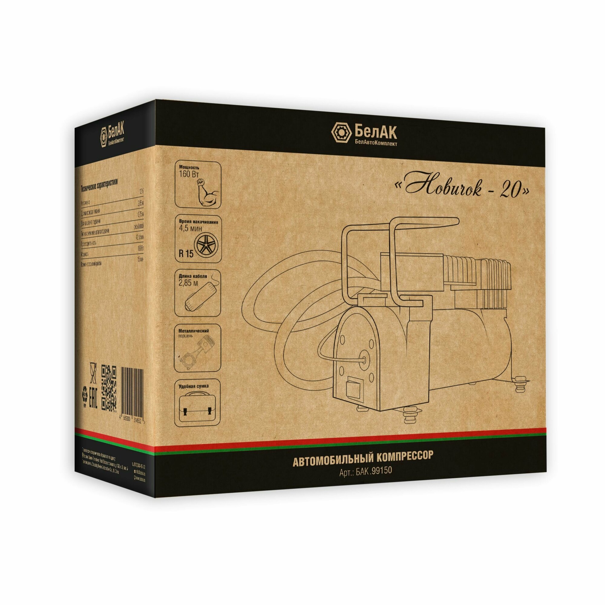 БелАК Компрессор для накачки шин Новичок - 20 БАК.99150