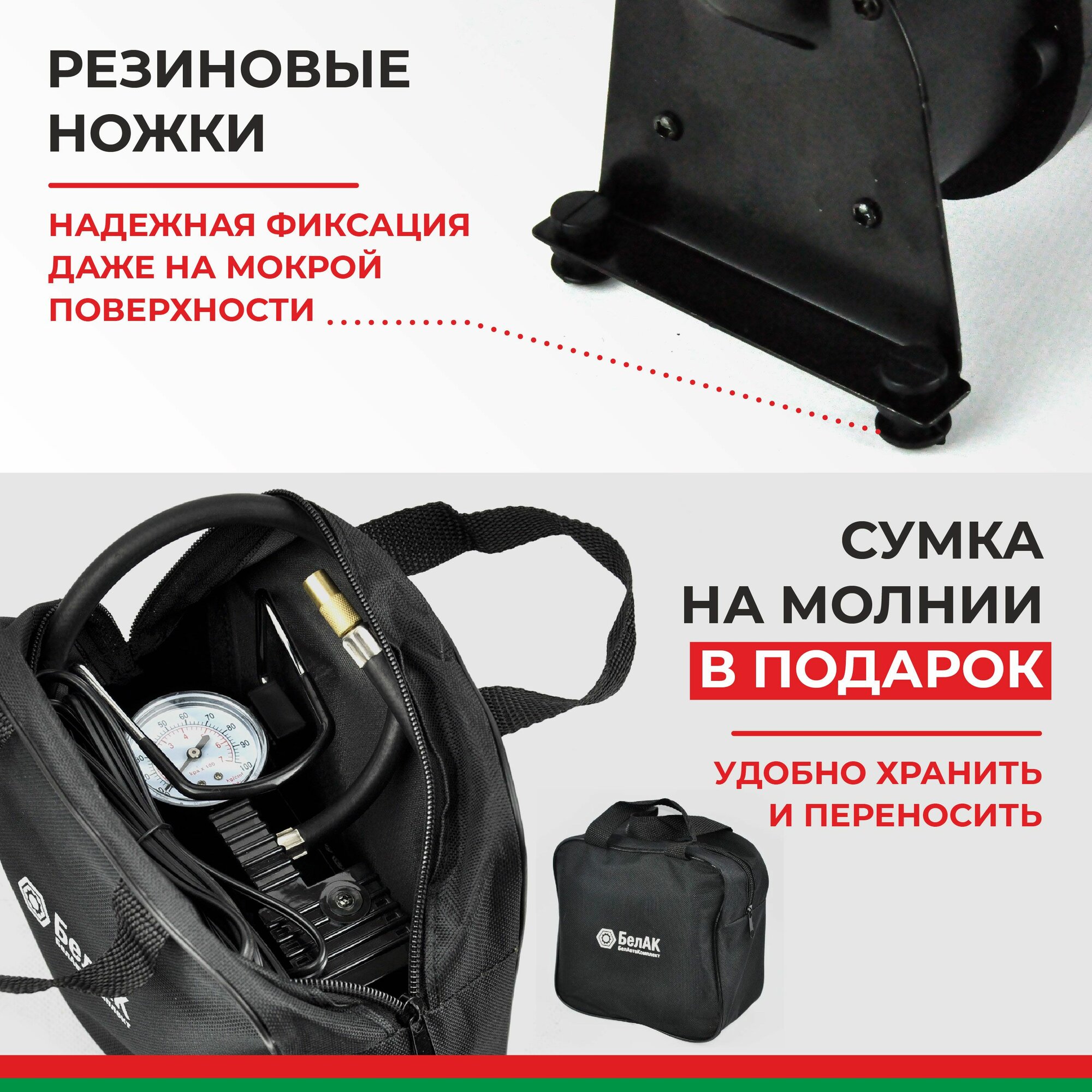 Компрессор (42 л/мин) 10 Атм 12V "БелАК" Новичок-20 (в сумке, 3 адаптера) белавтокомплект БАК.99150 | цена за 1 шт