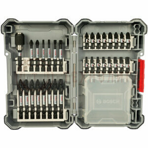 Прорезиненный кейс, съёмные держатели бит, контейнер под мелочевку. Возможность комплектации кейса по своему усмотрению. Недостатки: Как всегда цена. Набор бит Impact Control Pick and Click, 31 шт. — это комплектуемый пользователем набор, содержащий биты высокой прочности, которые идеально подходят для работы в тяжелых условиях и выдерживают даже высокую мощность гайковертов. Бита имеет удлиненную торсионную зону, которая делает ее очень долговечной. Модифицированная сталь S2 и оптимизированный процесс термической обработки обеспечивают высокую эффективность, в том числе при монтаже установок при тяжелых промышленных работах. Имеется внешний шестигранный хвостовик 1/4 дюйма для применения с дрелями-шуруповертами, шуруповертами и особенно с гайковертами. Этот набор — часть системы Bosch Pick and Click, позволяющей создавать наборы оснастки по выбору пользователя с любым сочетанием бит. Защелкивающиеся крепления надежно удерживают отдельные кассеты, таким образом, можно составлять индивидуальные наборы и легко заменять в них старые кассеты. Кроме того, Набор бит Impact Control Pick and Click, 31 шт., включает контейнер-вкладыш Pick and Click — переносной контейнер для маленьких бит и необходимых мелочей — и быстрозажимной держатель Impact Control для прочного крепления и быстрой и легкой смены бит при универсальном применении с электроинструментом. Контейнер-вкладыш Pick and Click прочно фиксируется в специальных креплениях в пустых кейсах Bosch Pick and Click размеров M и L; пластиковые держатели позволяют транспортировать и извлекать принадлежности. Содержимое: PH2 / PZ2 / T15, T20, T25, T30 / PH1, PH2 (2x), PH3 / PZ2 (2 шт.), PZ3 / T15, T20 (2 шт.), T25 (2 шт.), T30 (2 шт.), T40 / PH1-PH2 / PH2-PH3 / PH2-PZ2 (2 шт.) / SL1x5.5 / T15-T20 (2 шт.) / T25-T30 / Универсальный держатель Быстросъемное крепление / Ящик для хранения Длина бит: 60 / 50 / 50 / 50 / 25 / 25 / 25 / 60 / 60 / 60 / 60 / 60 / 60 |