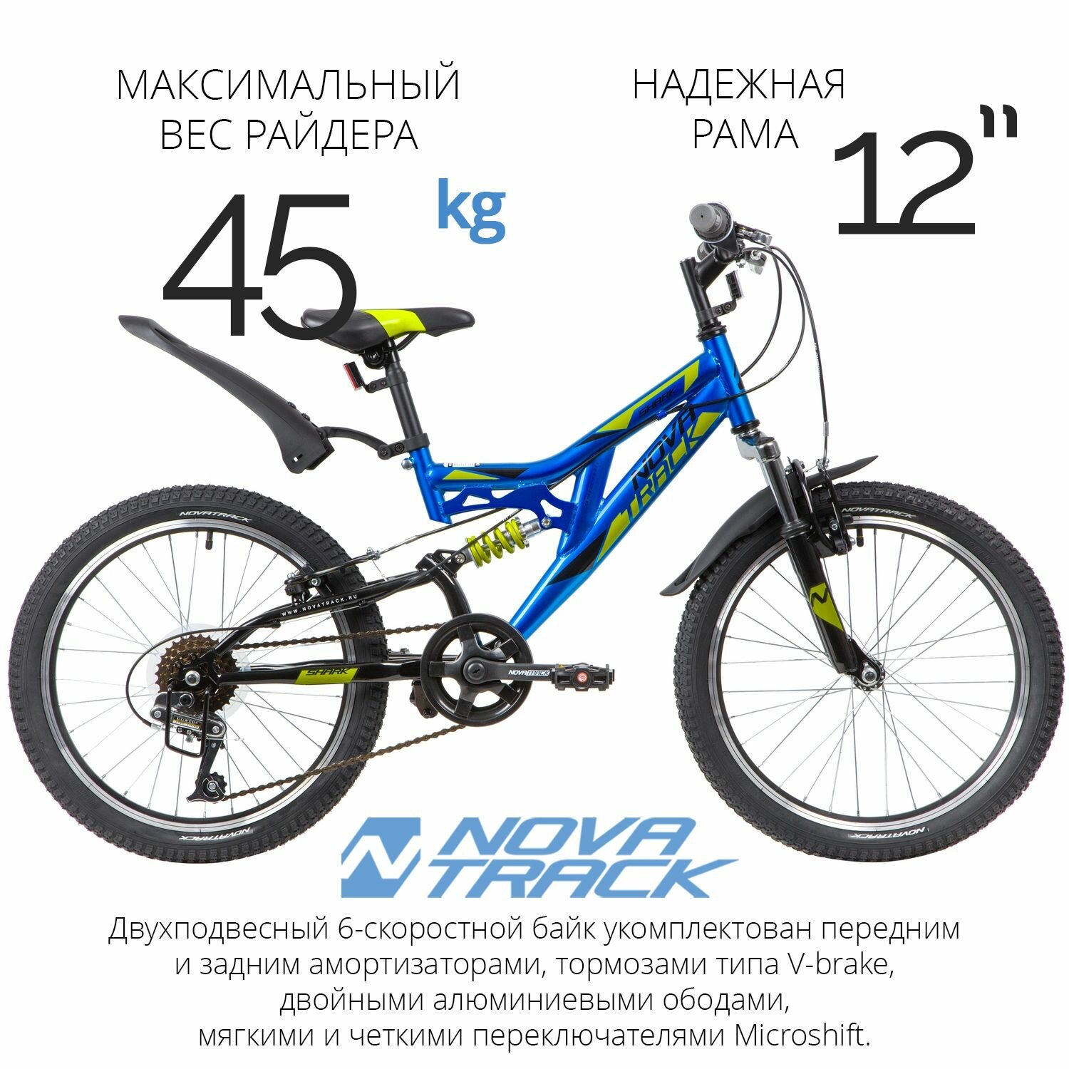 Велосипед детский 20 Novatrack Shark BL20, двухподвес, синий