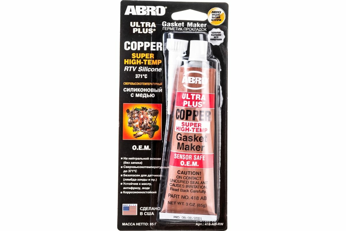 Герметик для ремонта автомобиля ABRO силиконовый 418-AB-R прокладок O.E.M. высокотемпературный, медный , 85 гр
