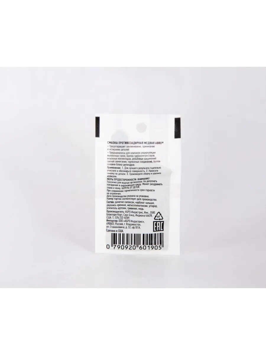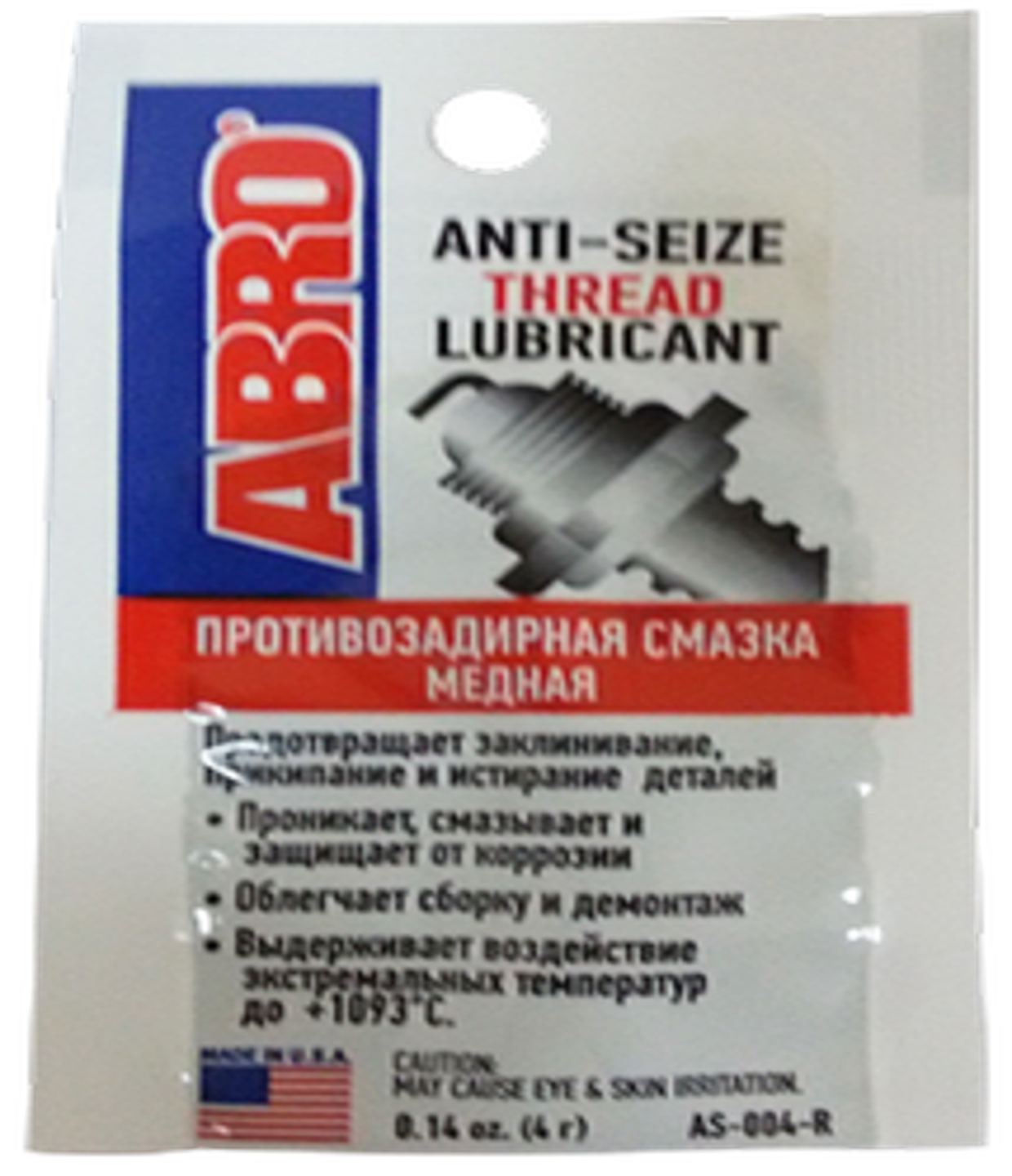 Смазка пластичная ABRO Anti-seize Thread Lubricant, противозадирная, медная, пакет 4г, арт. AS-004-R