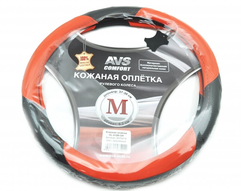 Купить Оплетка На Руль (Нат. Кожа) Avs Gl-910M-Or (Размер M, Оранжевый), Шт AVS арт. A07521S