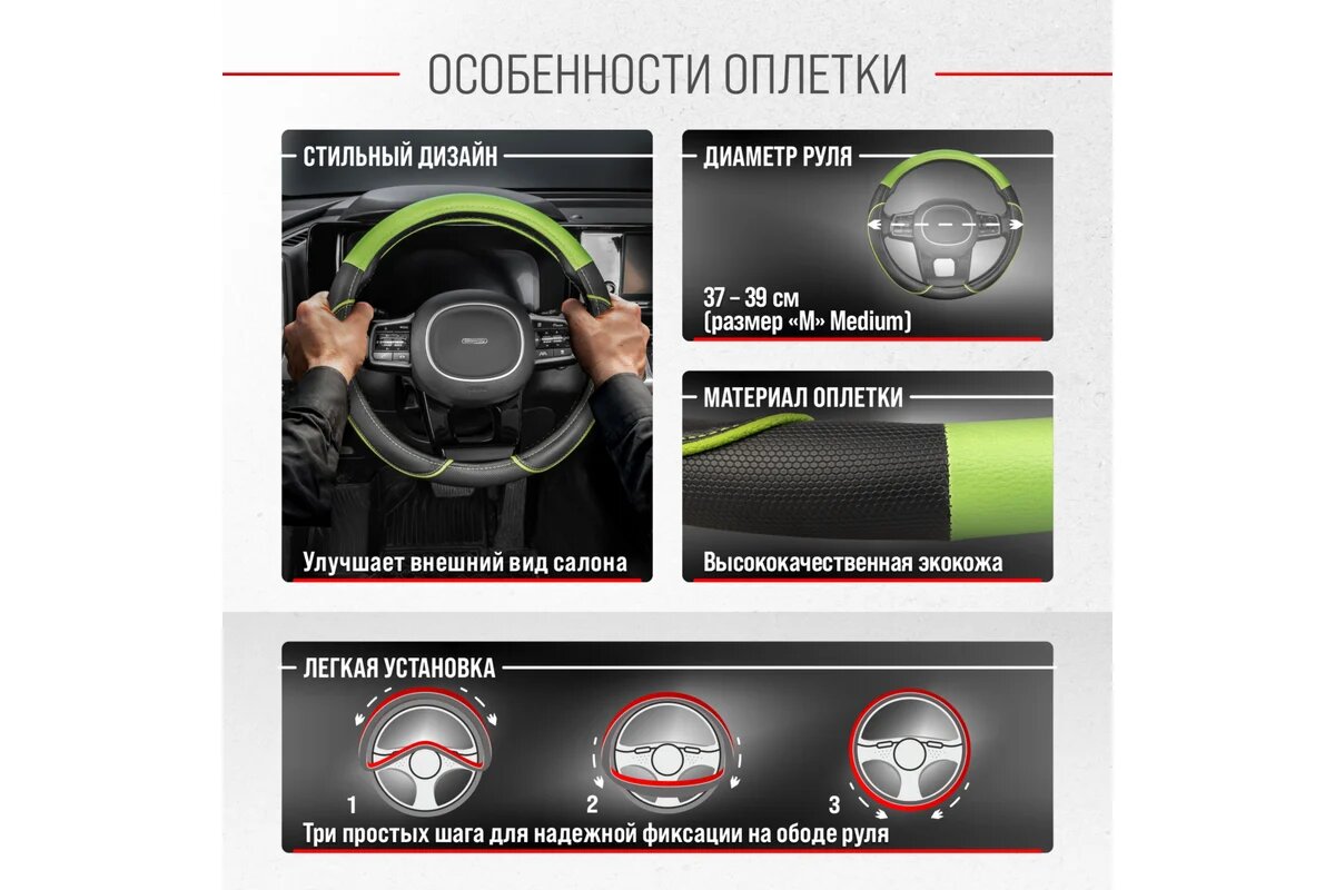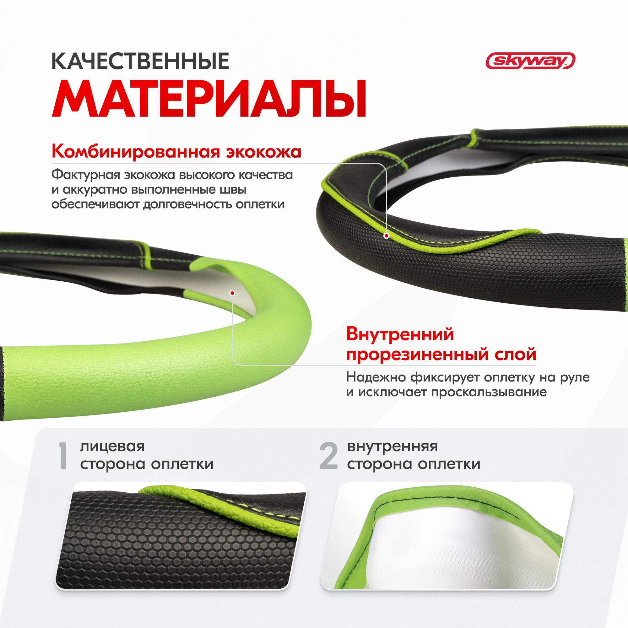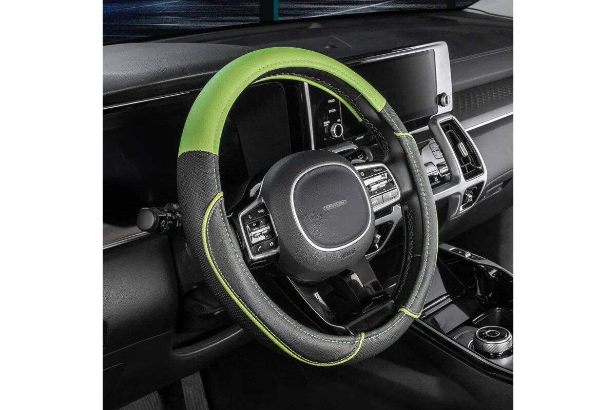СохранитьОплётка руля SKYWAY кожаная Черная с зеленой вставкой и полоской (M) интересное: